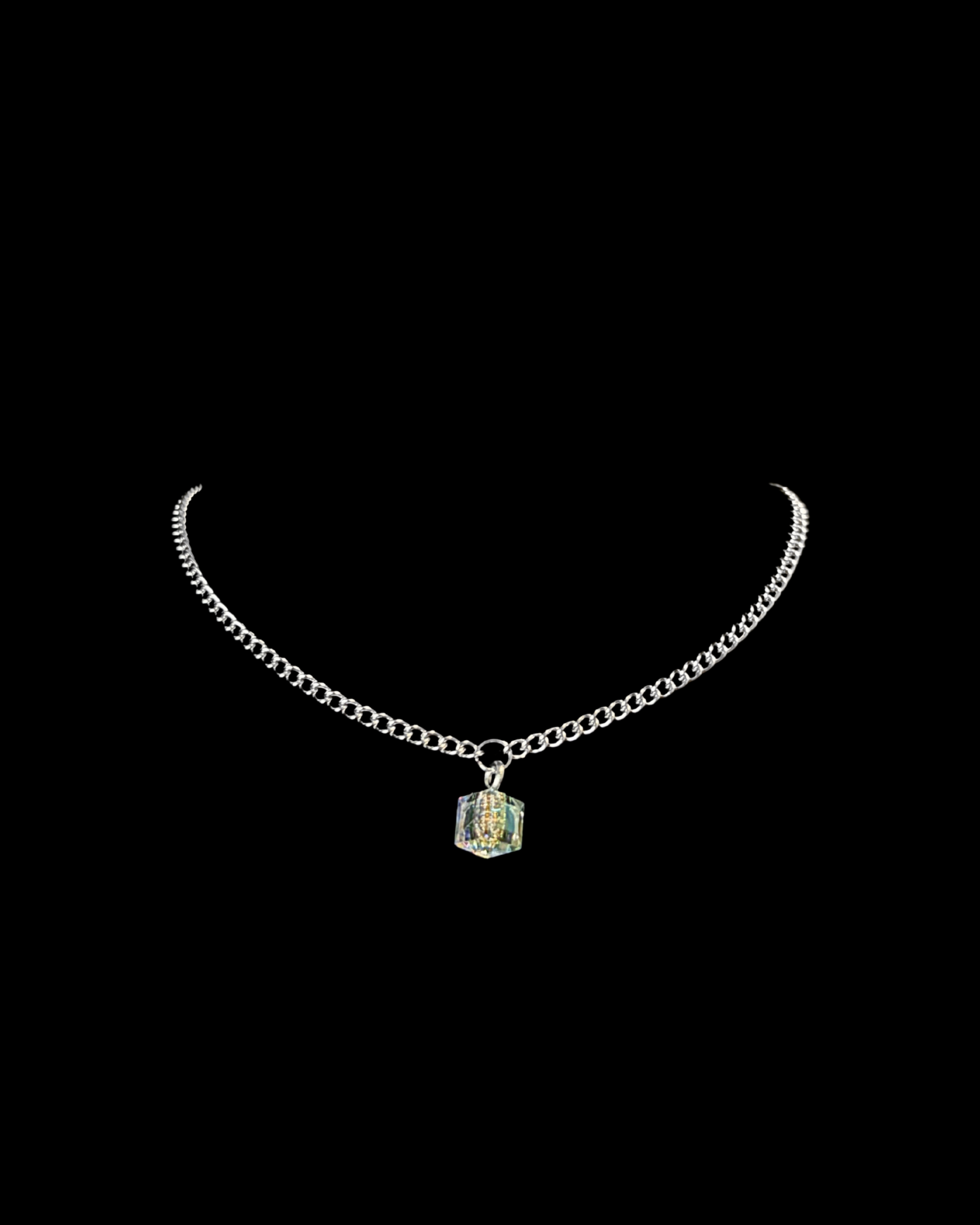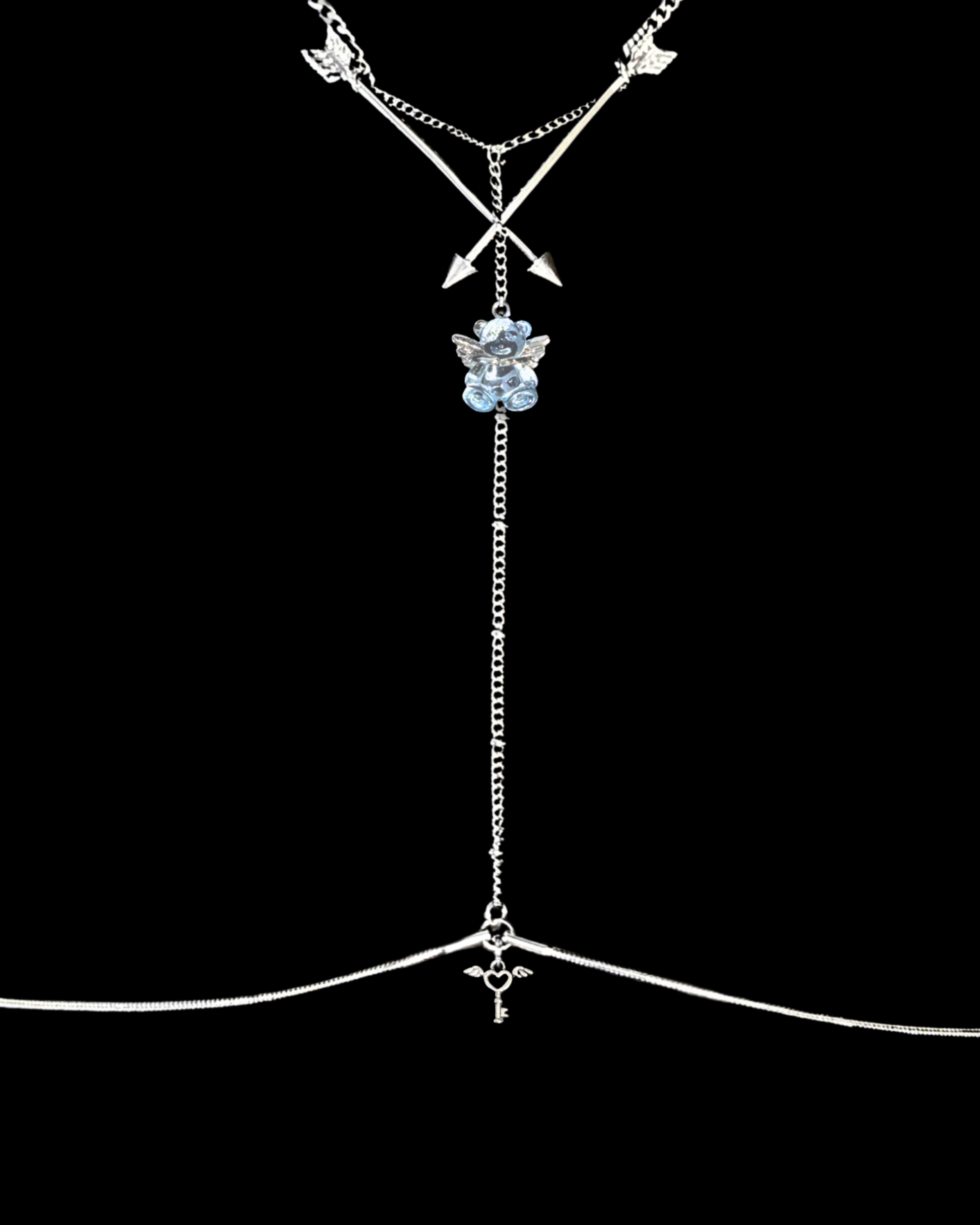 Back : Arrow pendants leading to a crystal teddy bear angel