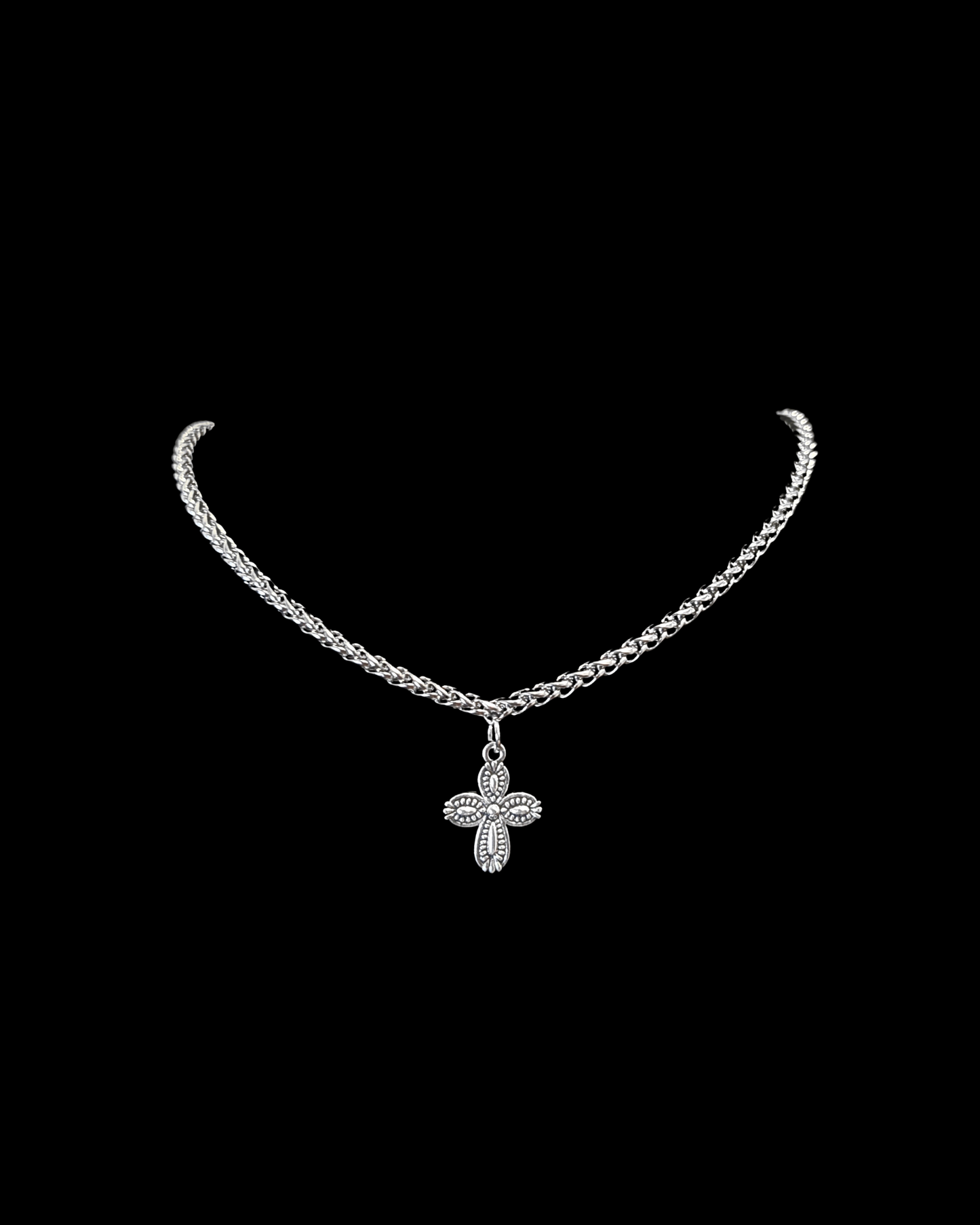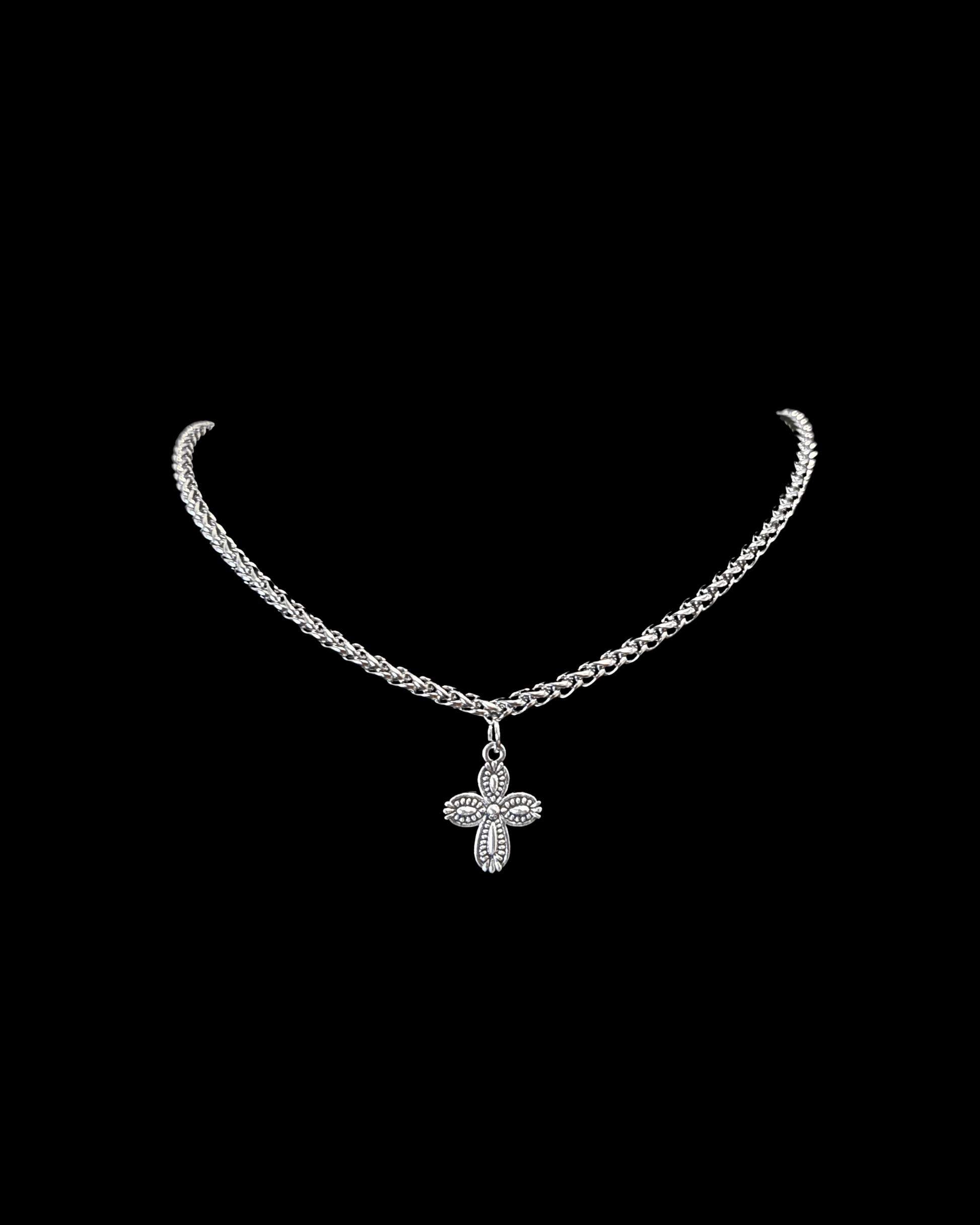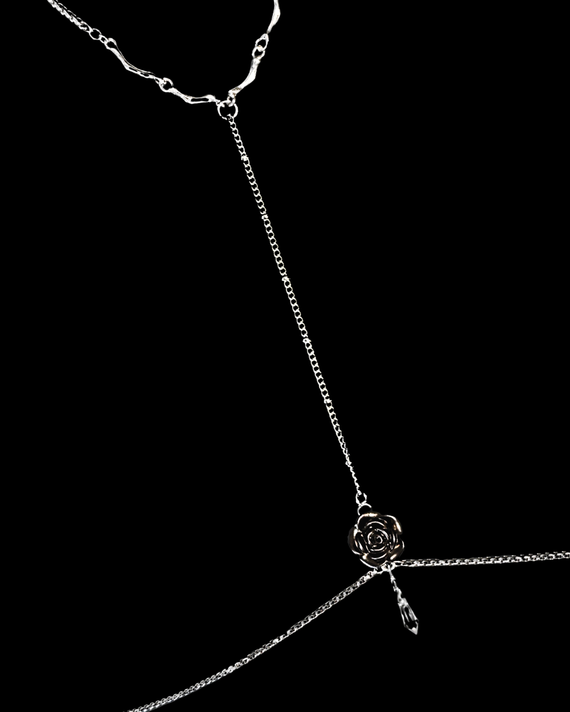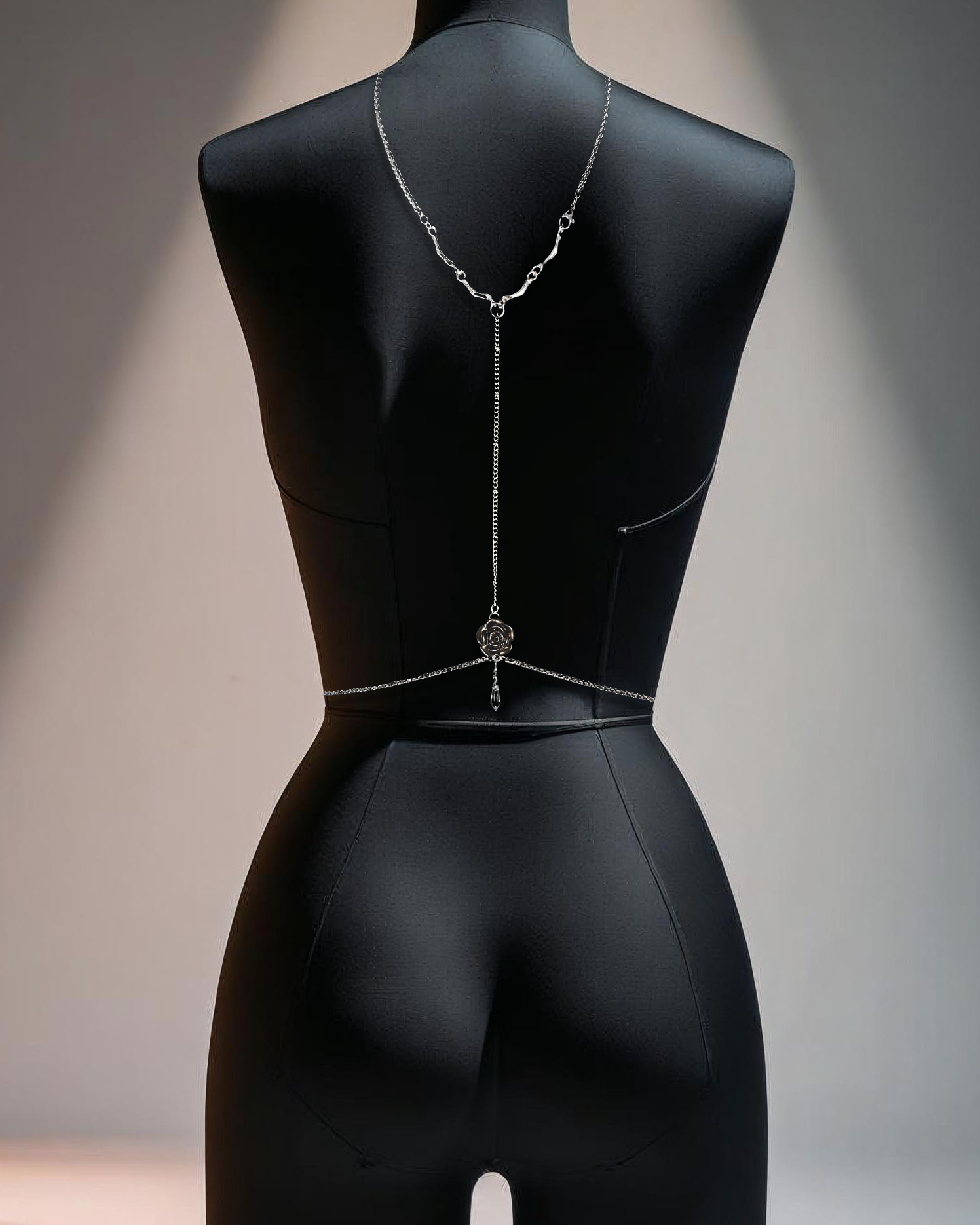 Back : Matt black rose centerpiece flowing through a spinal chain