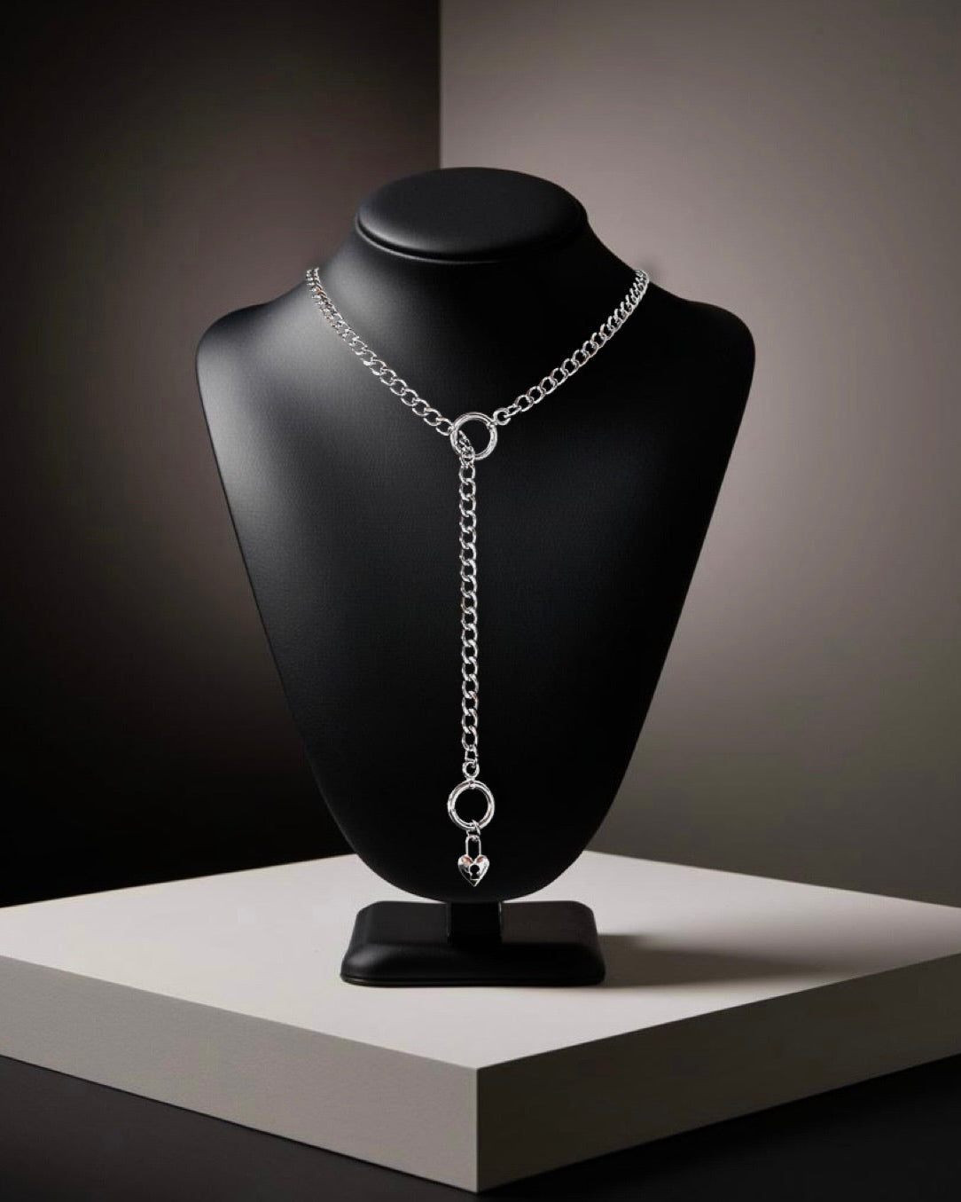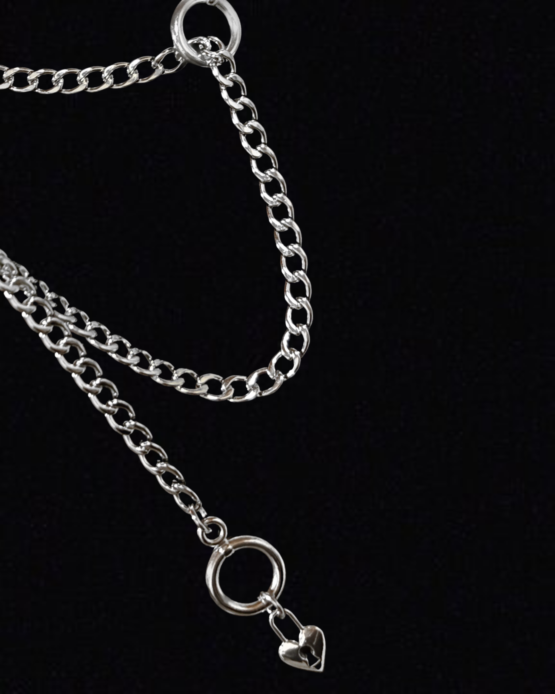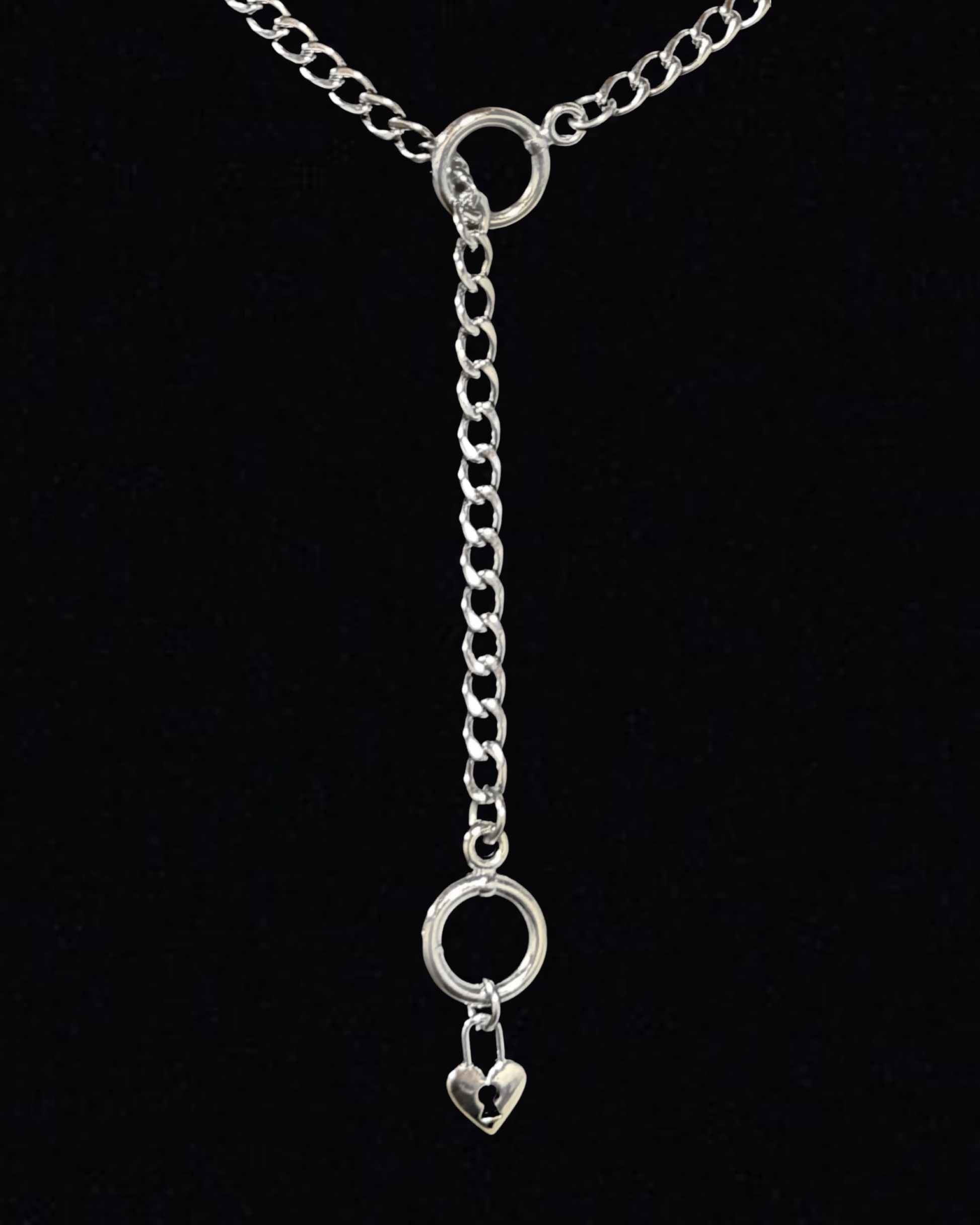 Interweaved chain design with heart charm. Classic sentiment in contemporary form.