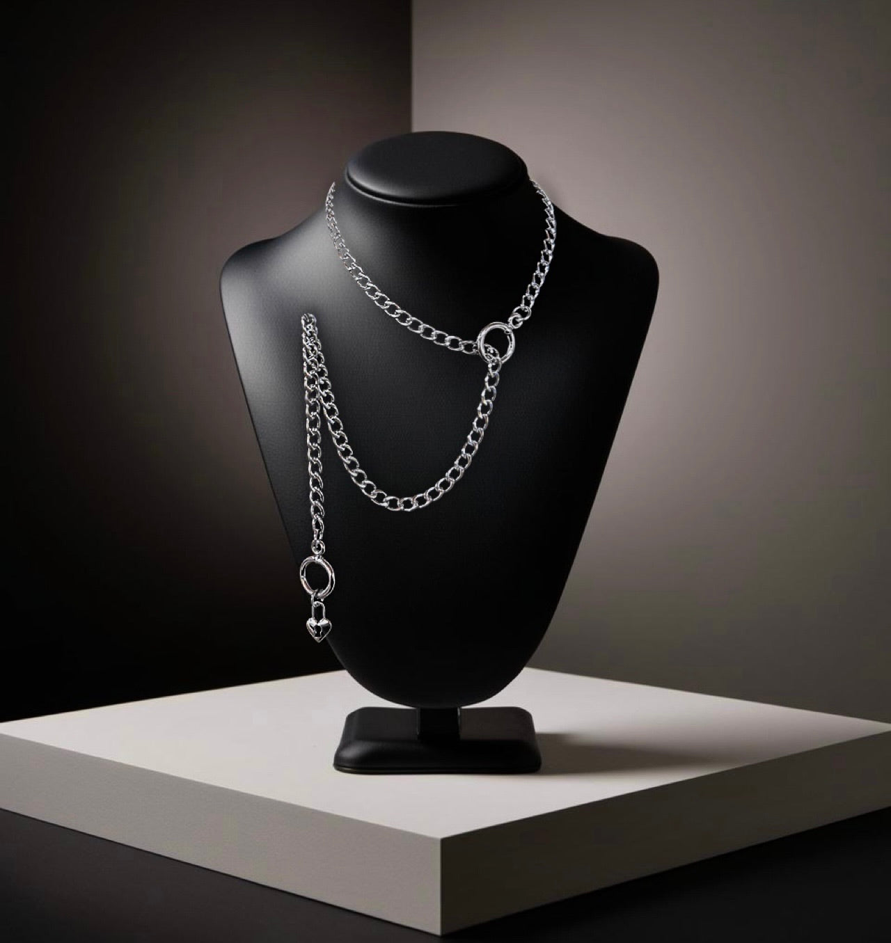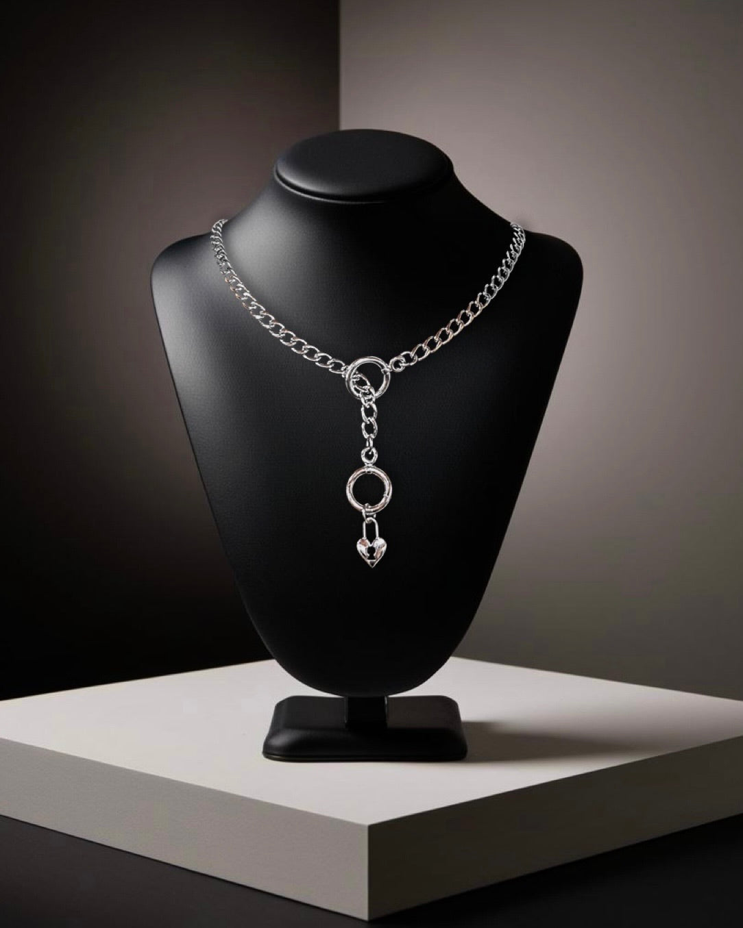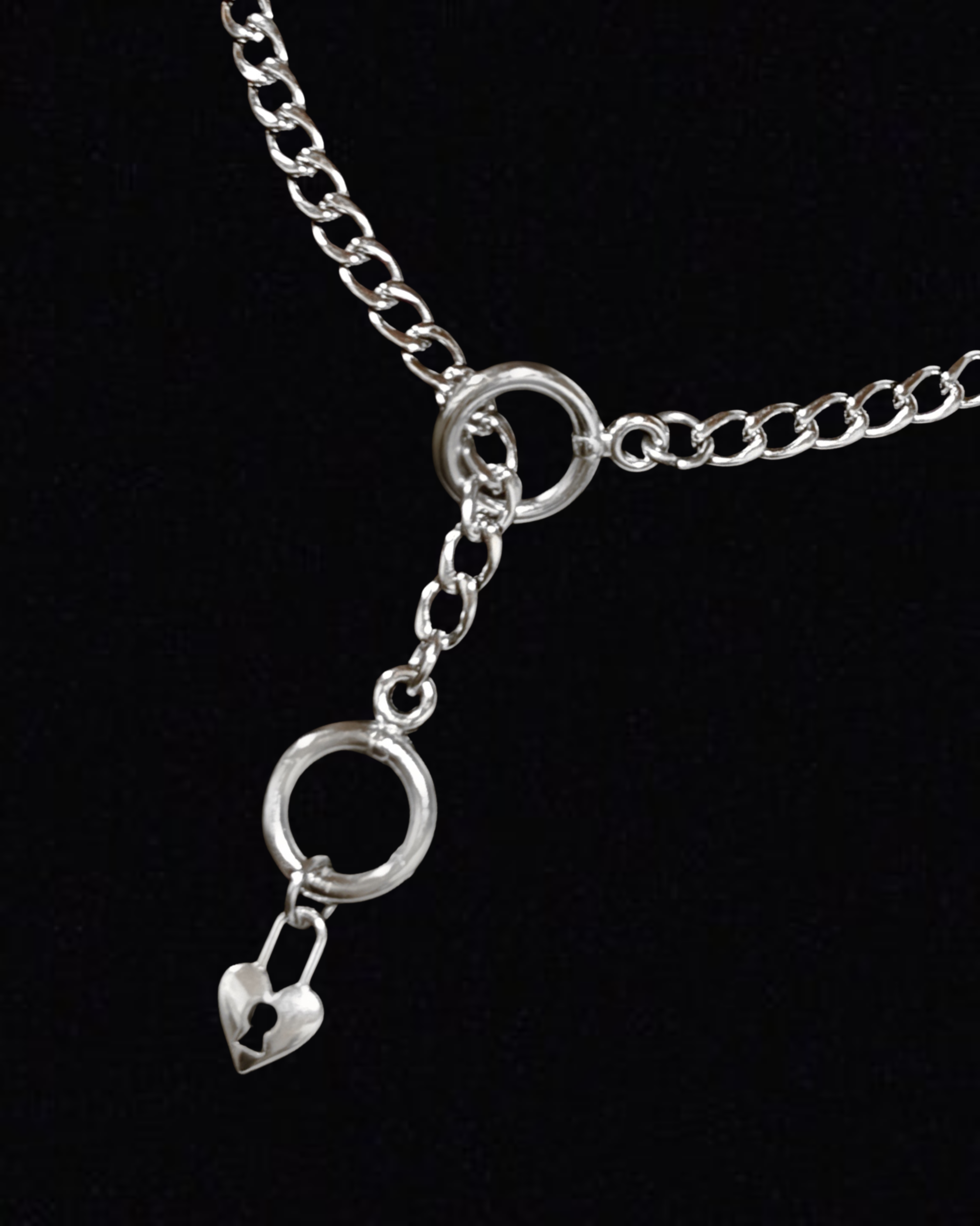 Interweaved chain design with heart charm. Classic sentiment in contemporary form.