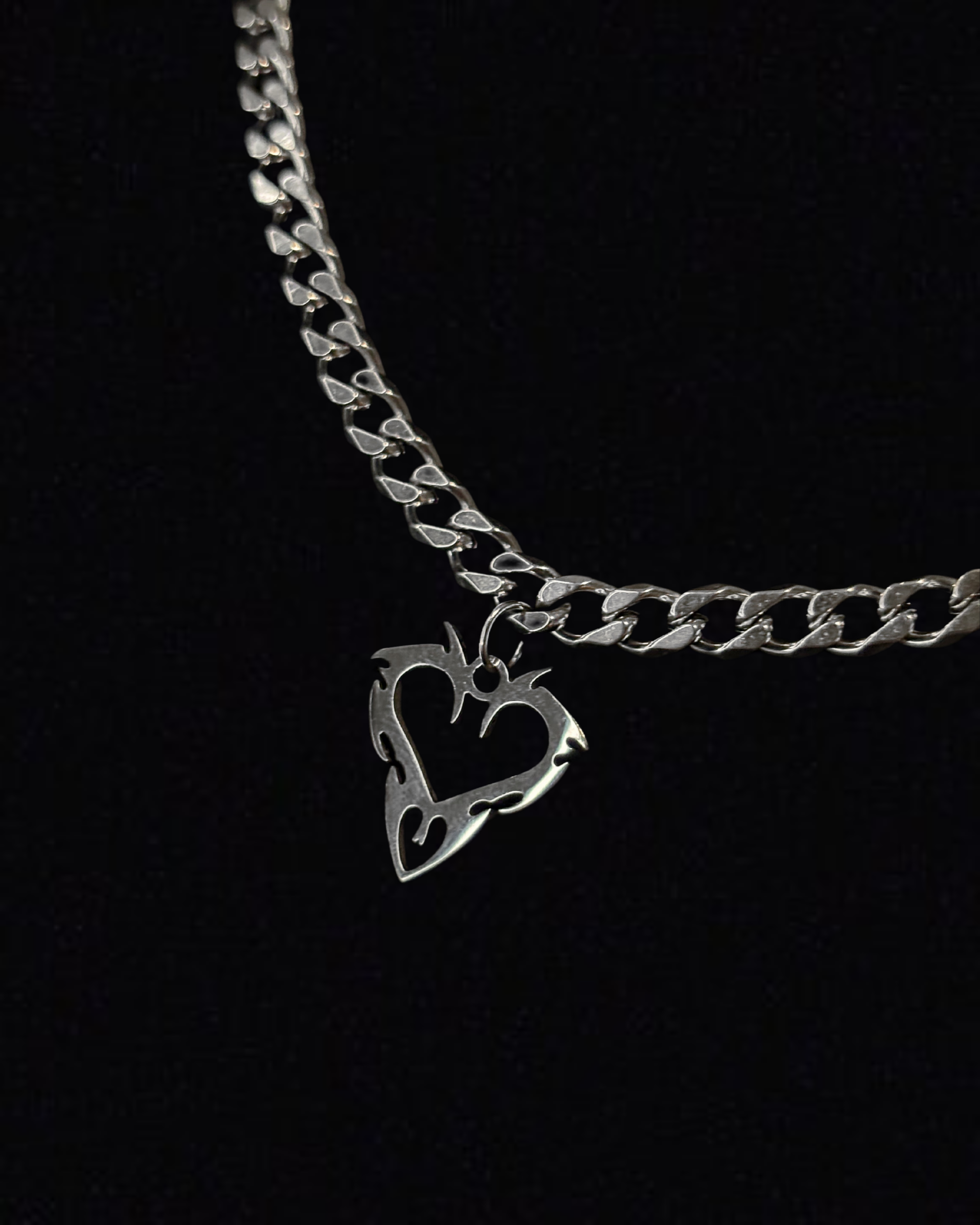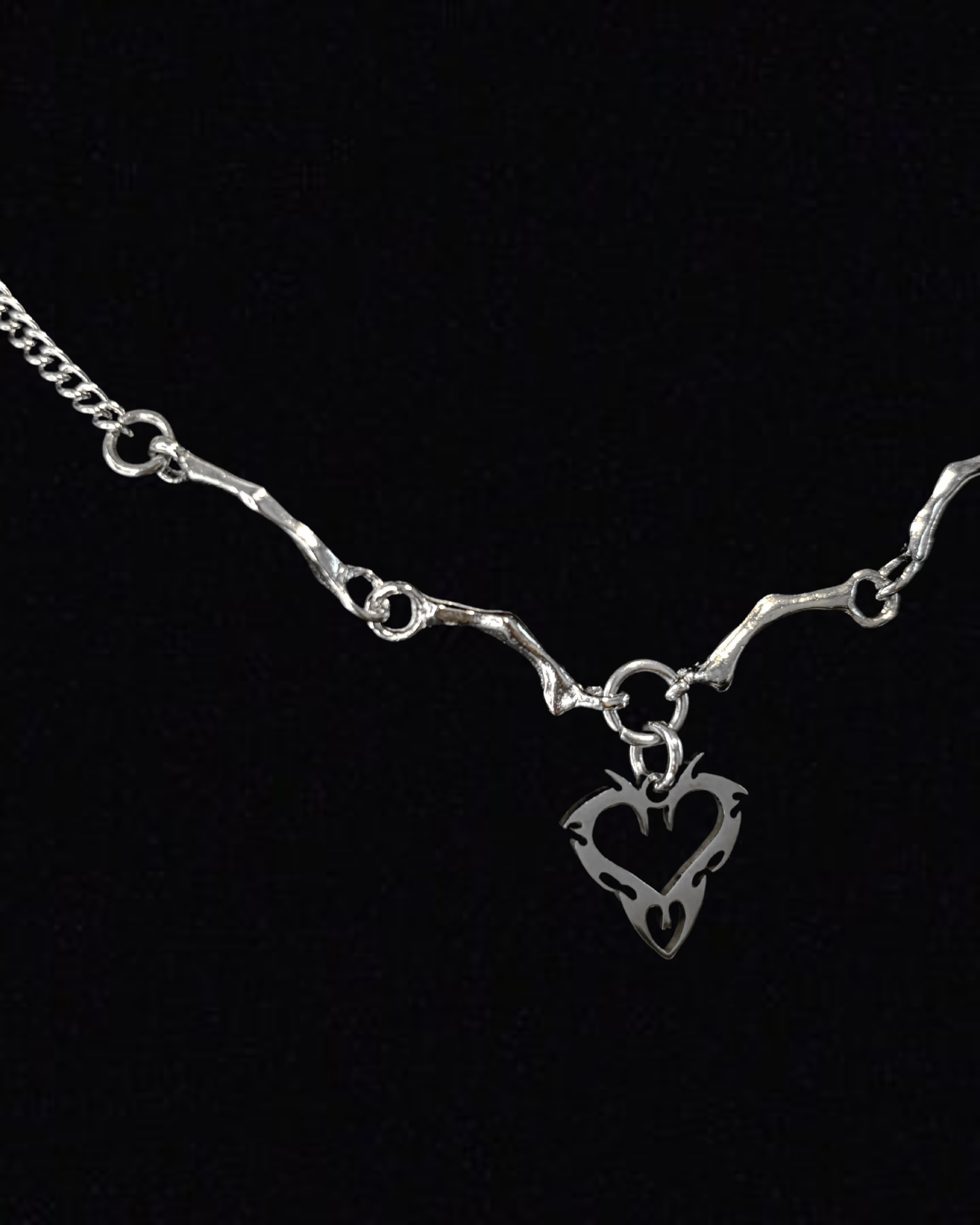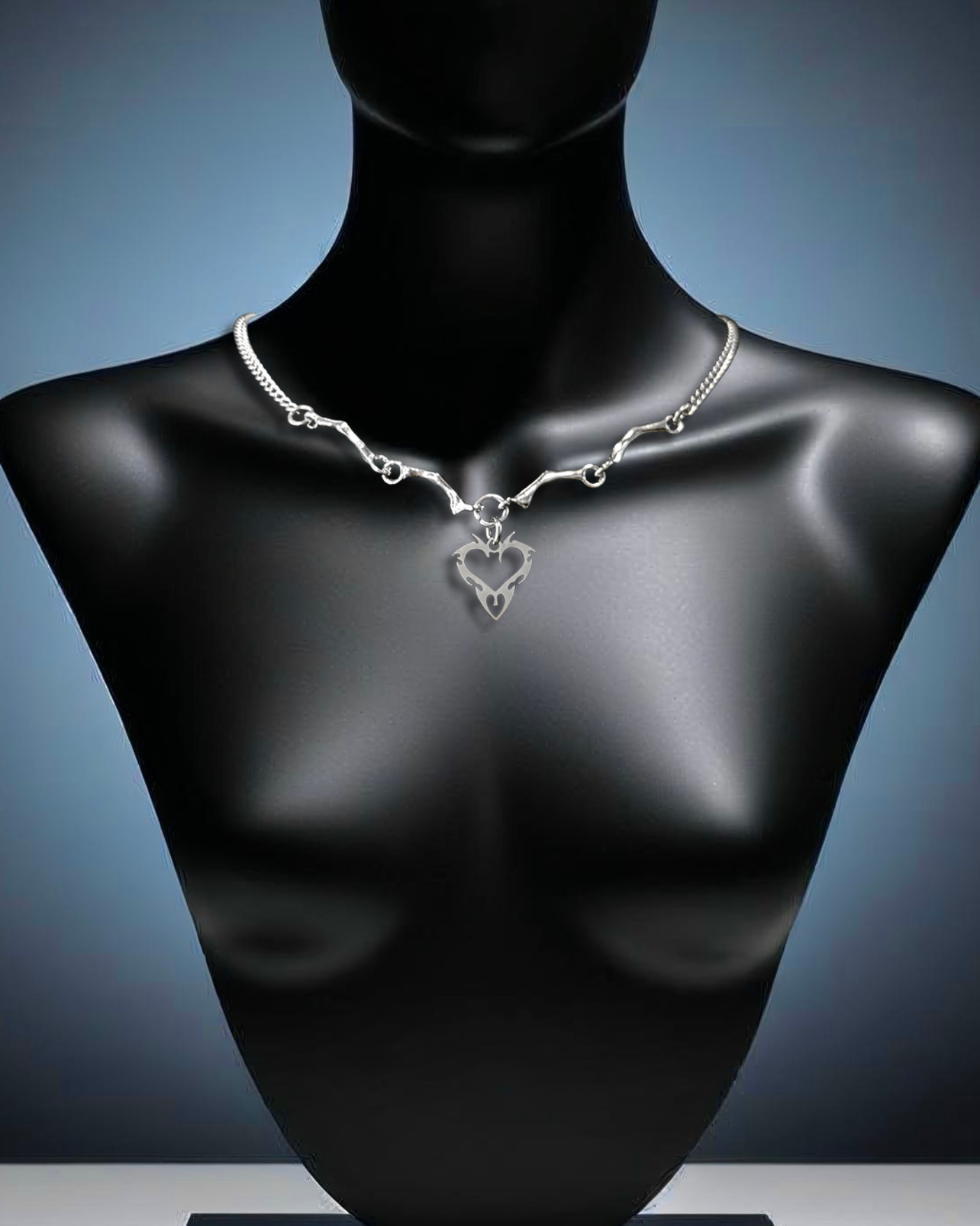 Curved link necklace with delicate heart charm. Fluid elegance, tender finish.