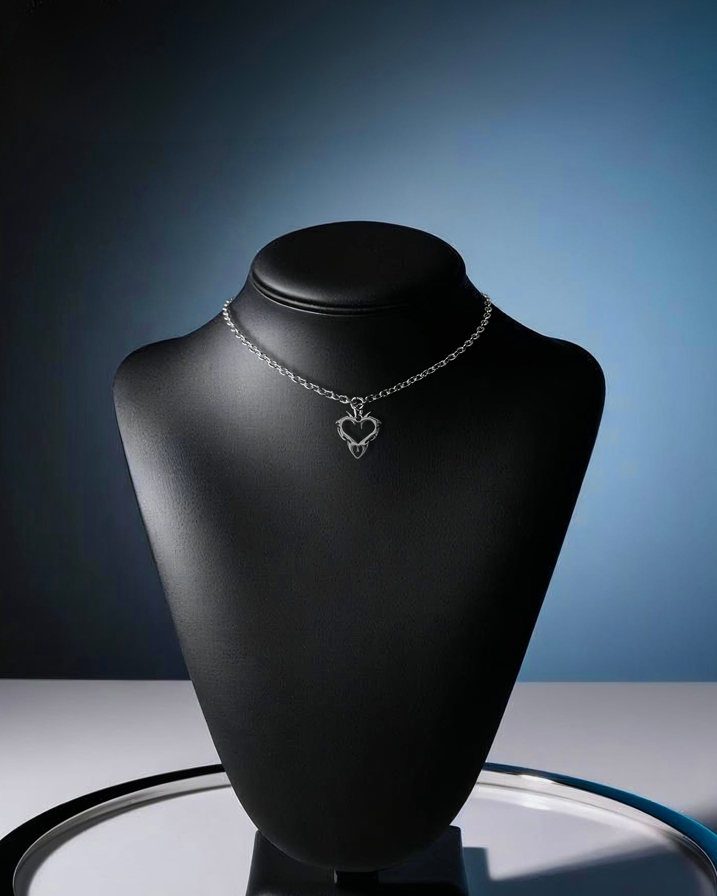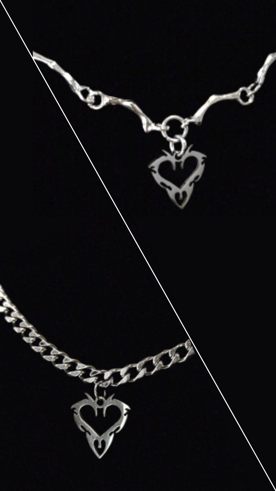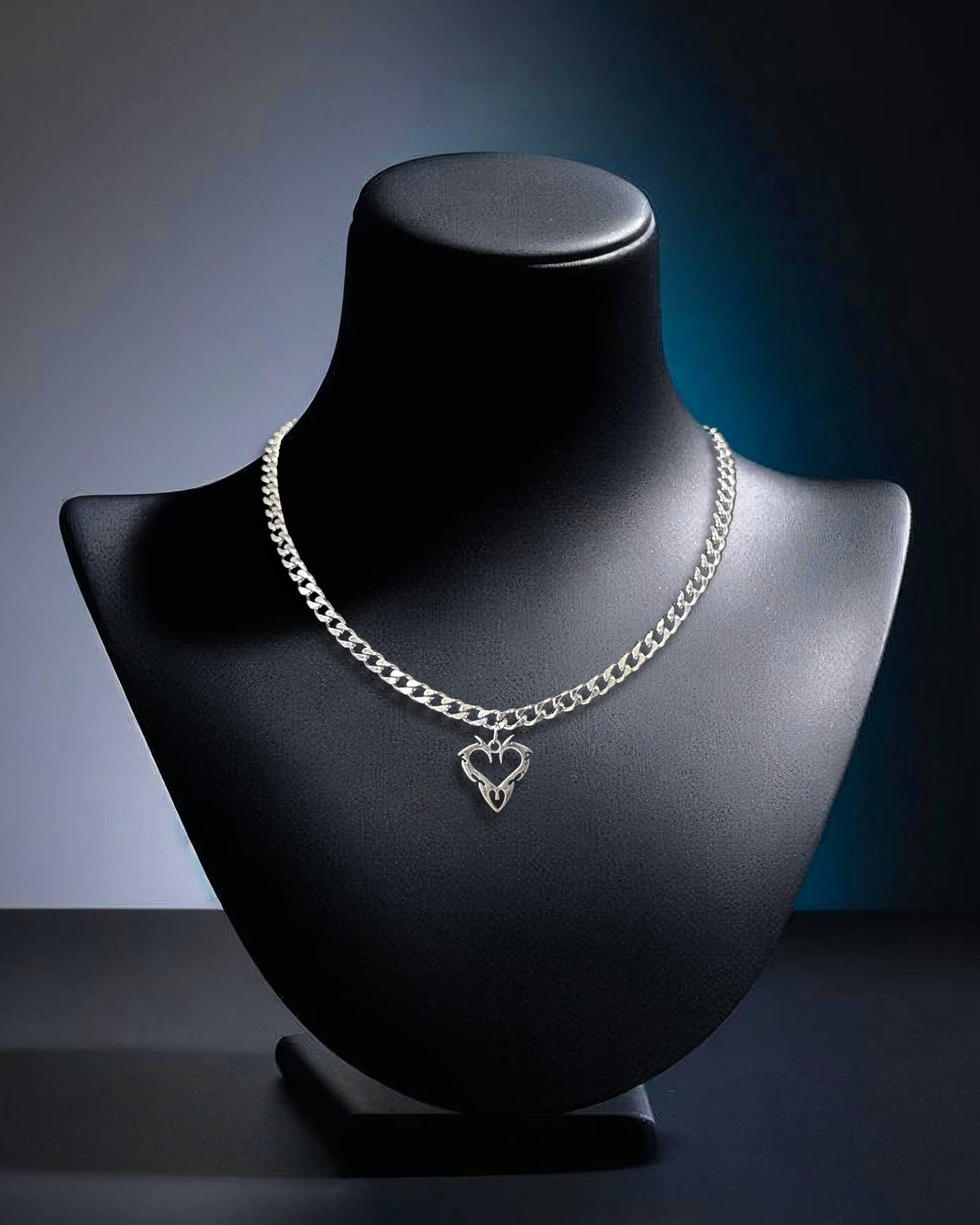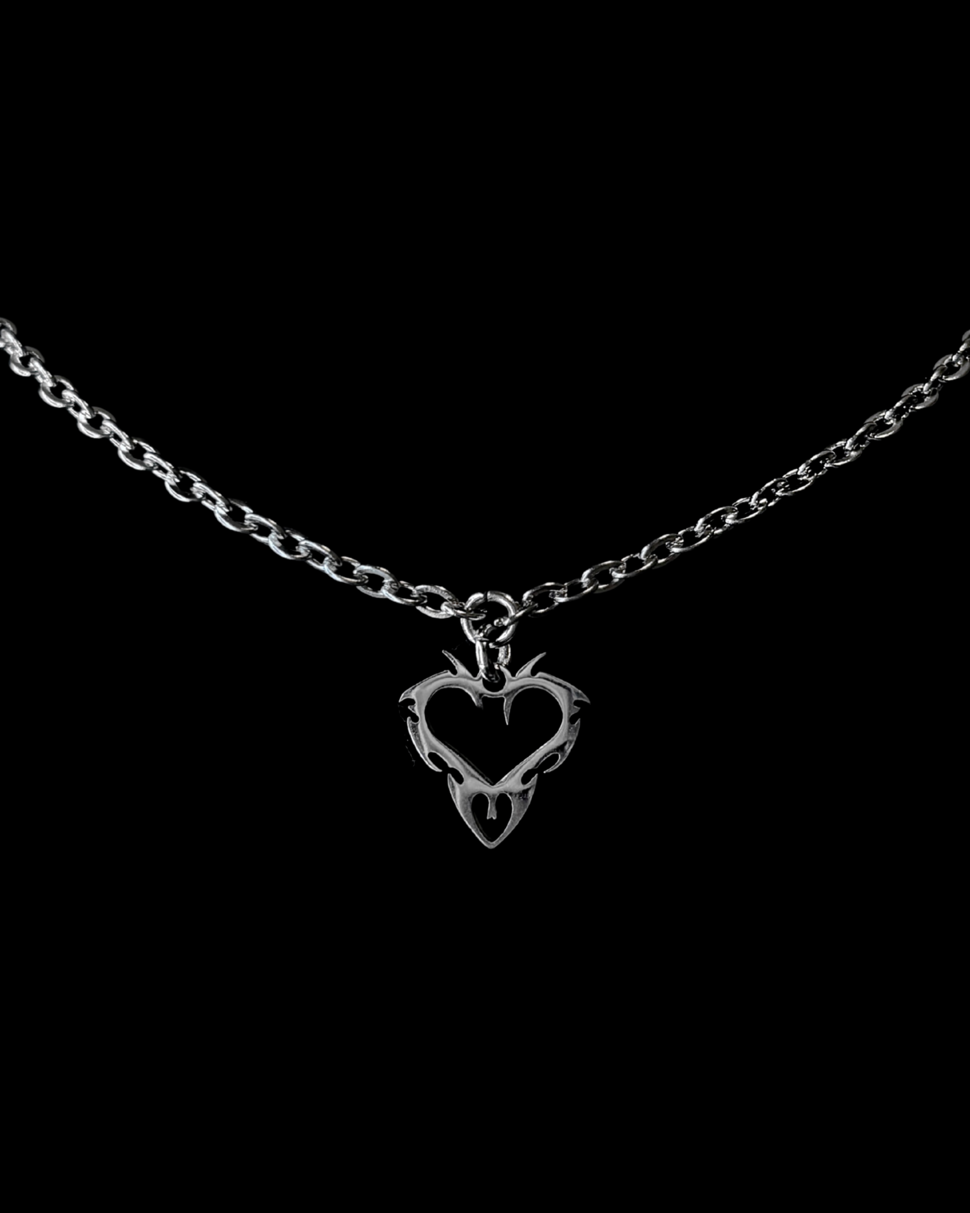 Curved link necklace with delicate heart charm. Fluid elegance, tender finish.