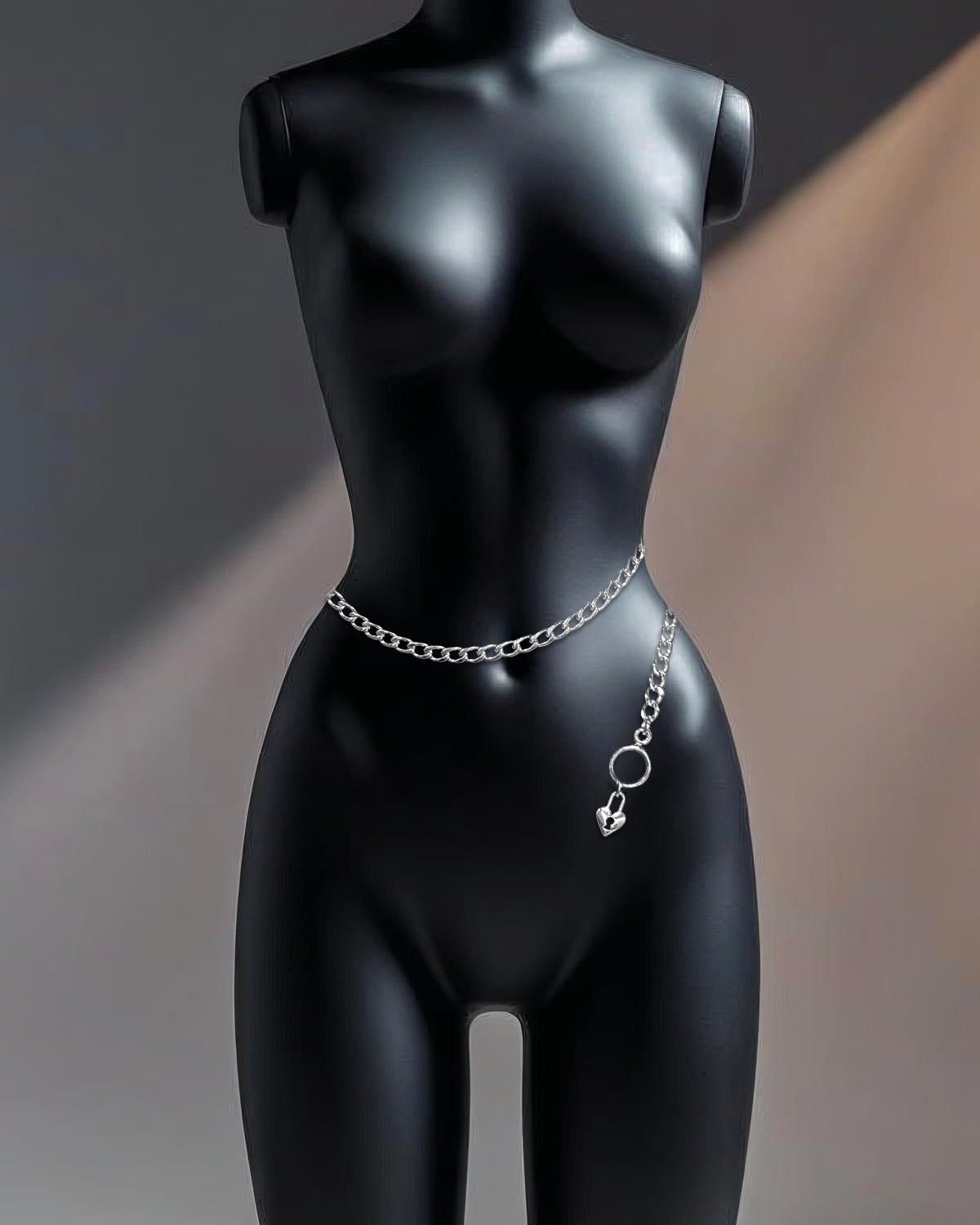 Elegant waist chain featuring a heart lock charm pendant - draping creates a subtle silhouette accent