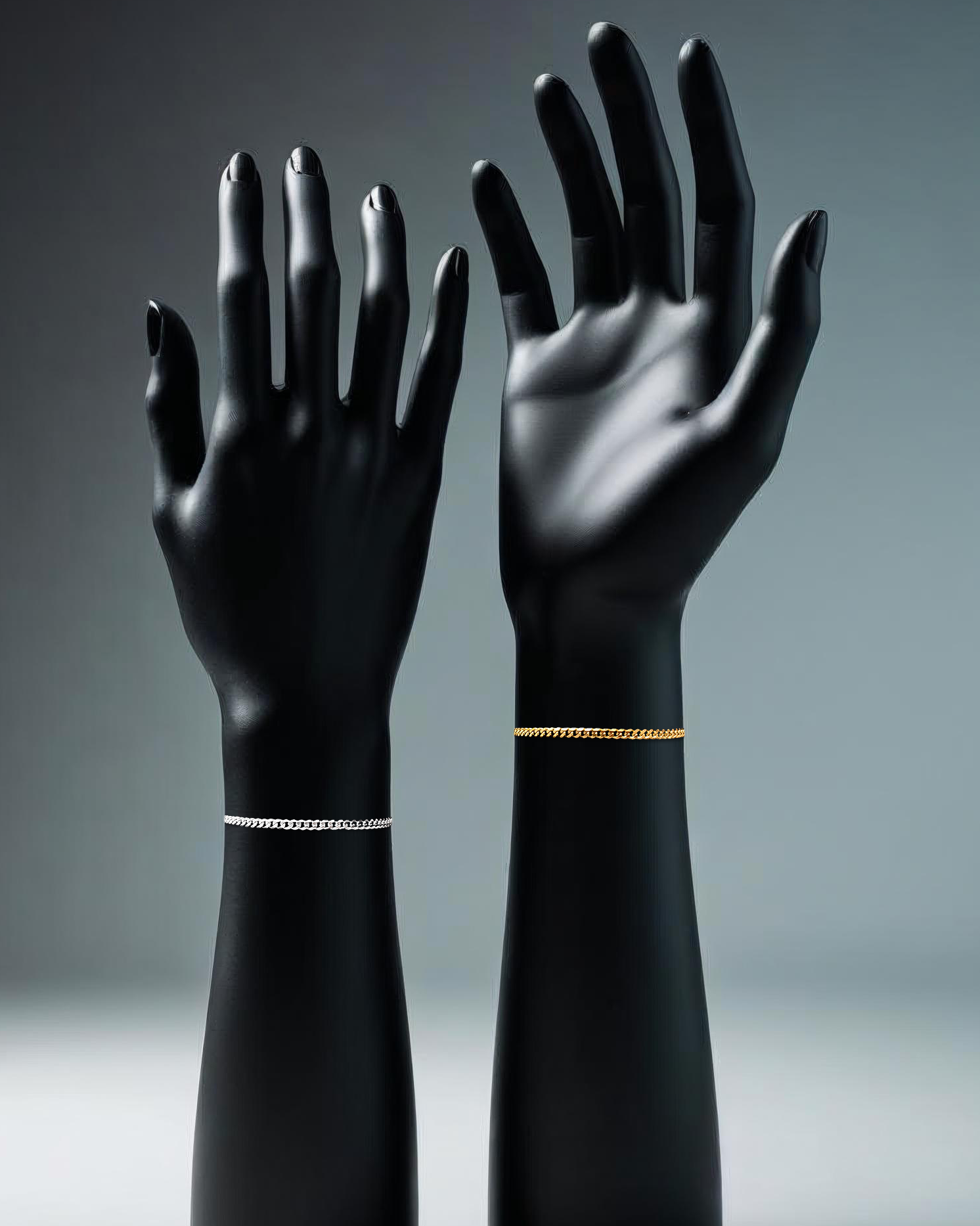 Sleek curb chain bracelets in complementary gold and silver tones