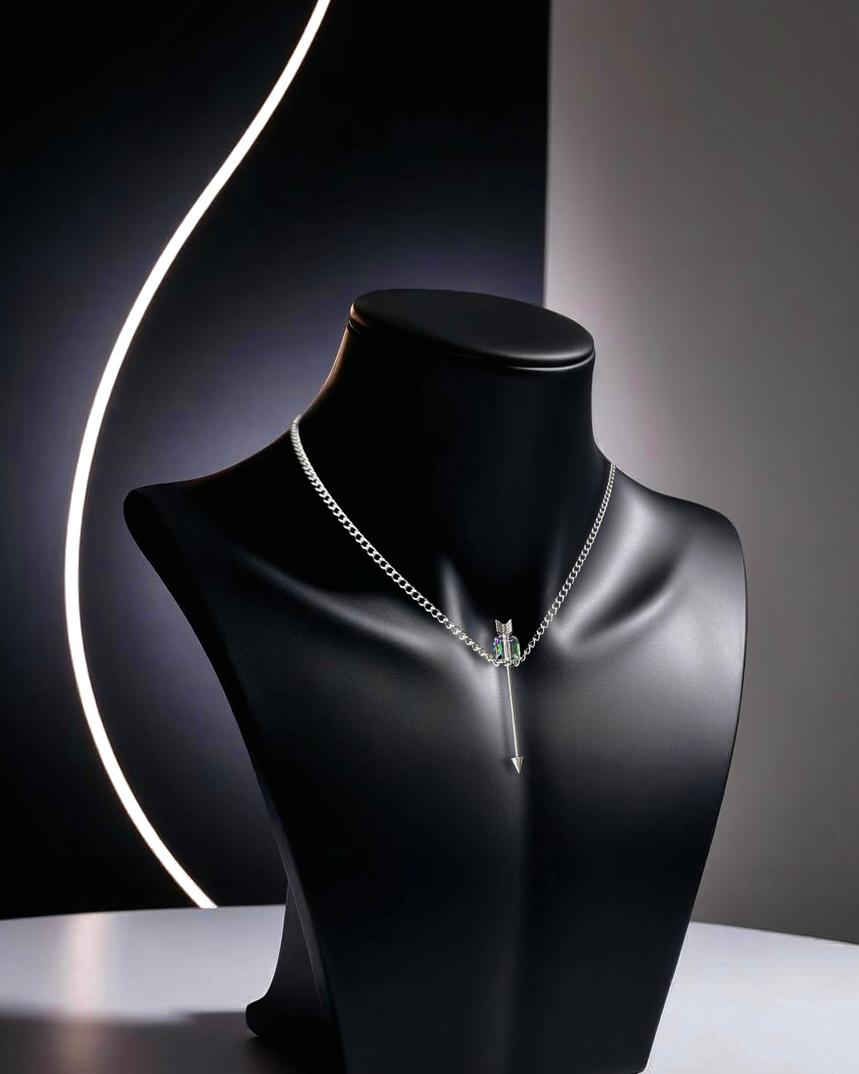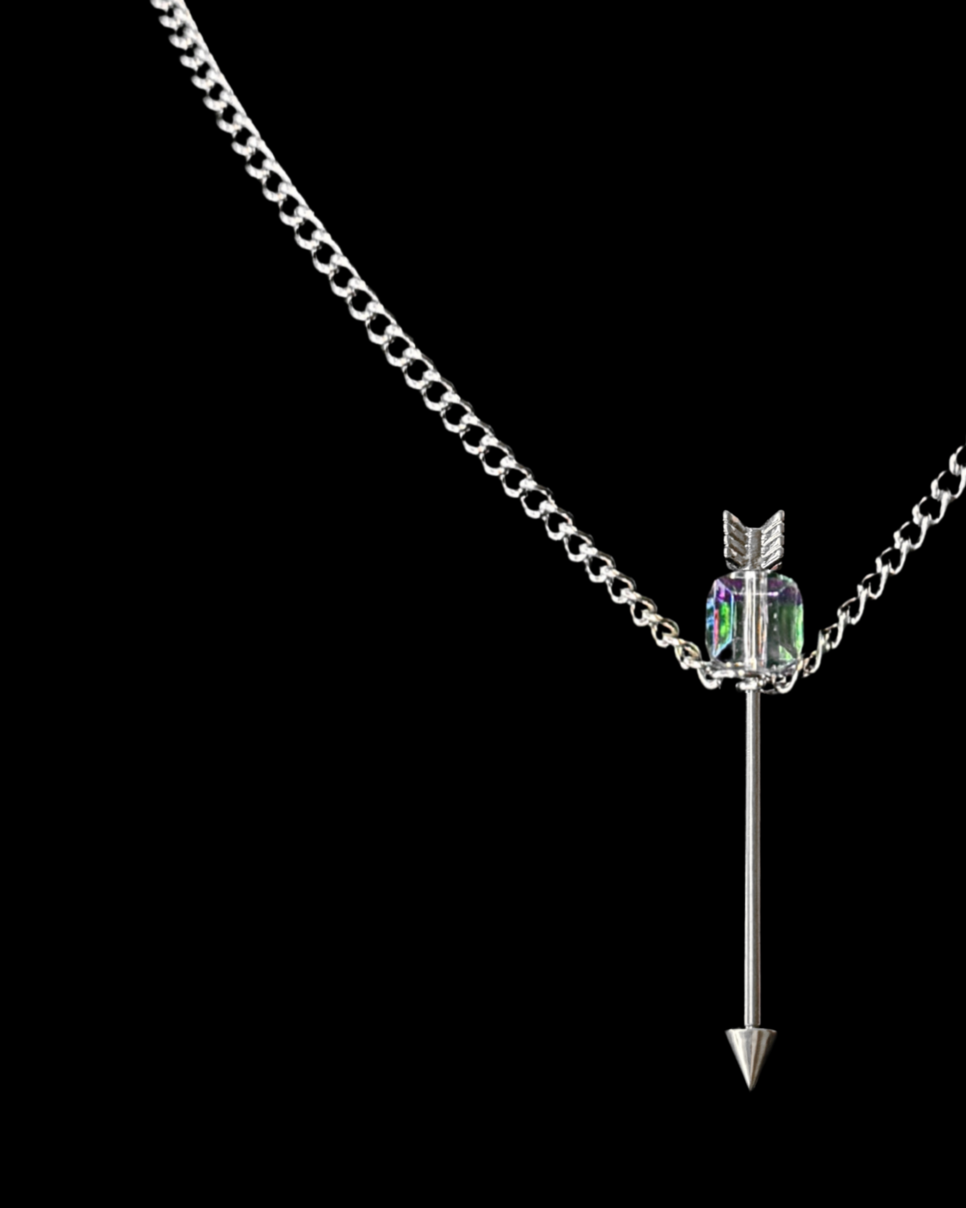 Symmetrical necklace with a translucent accent and elongated arrow pendant