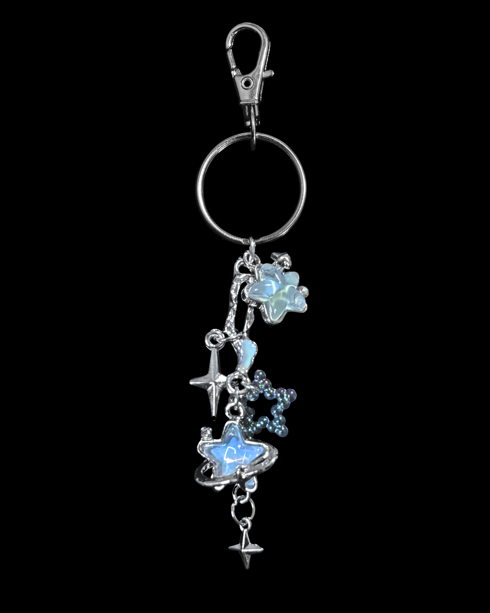 A stellar belt charm featuring cascading opalescent stars and planetary elements
