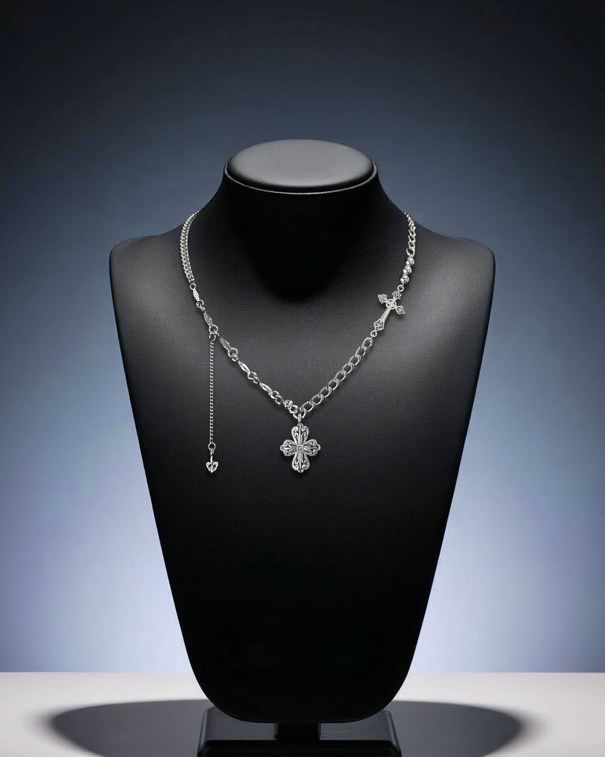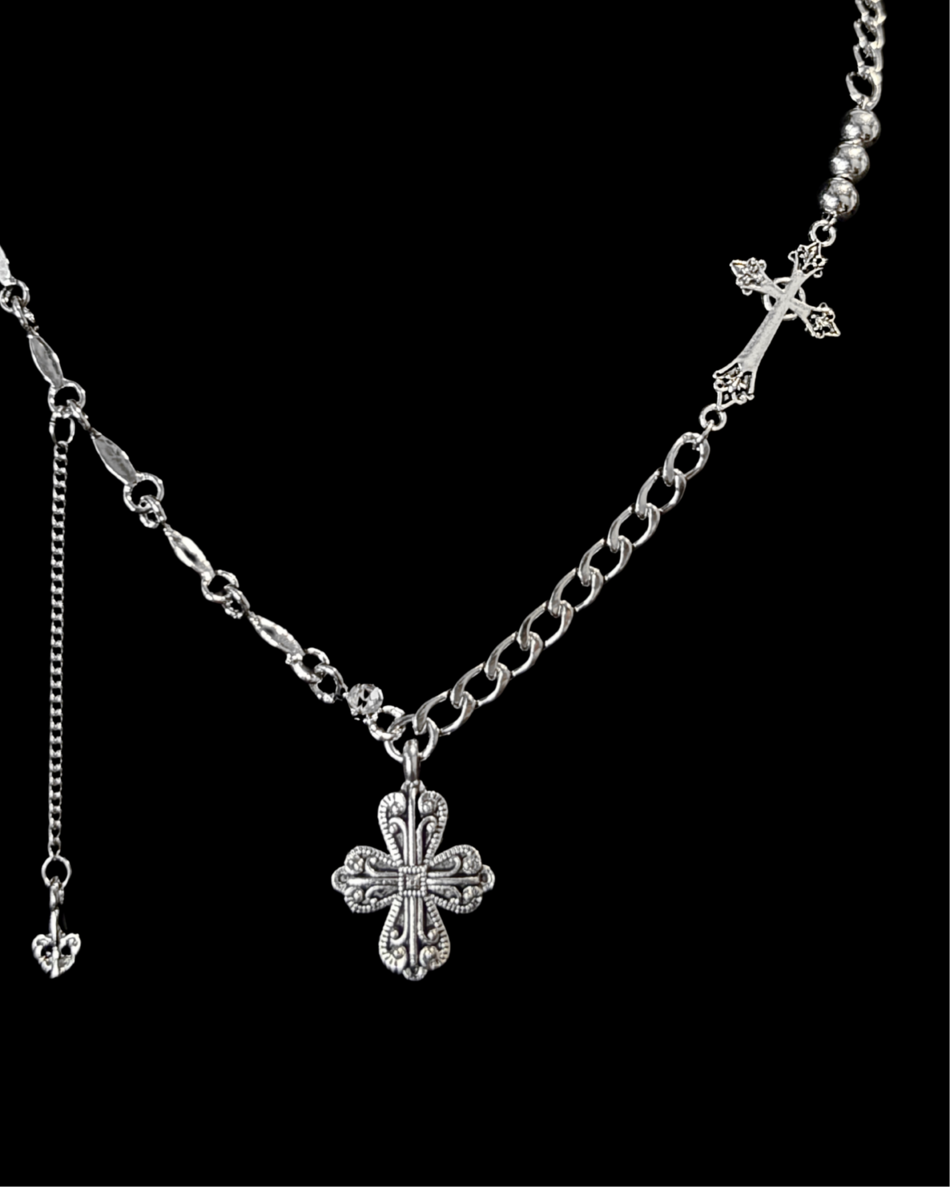 Multi-chain with cross pendants and (optional) steel drop accent