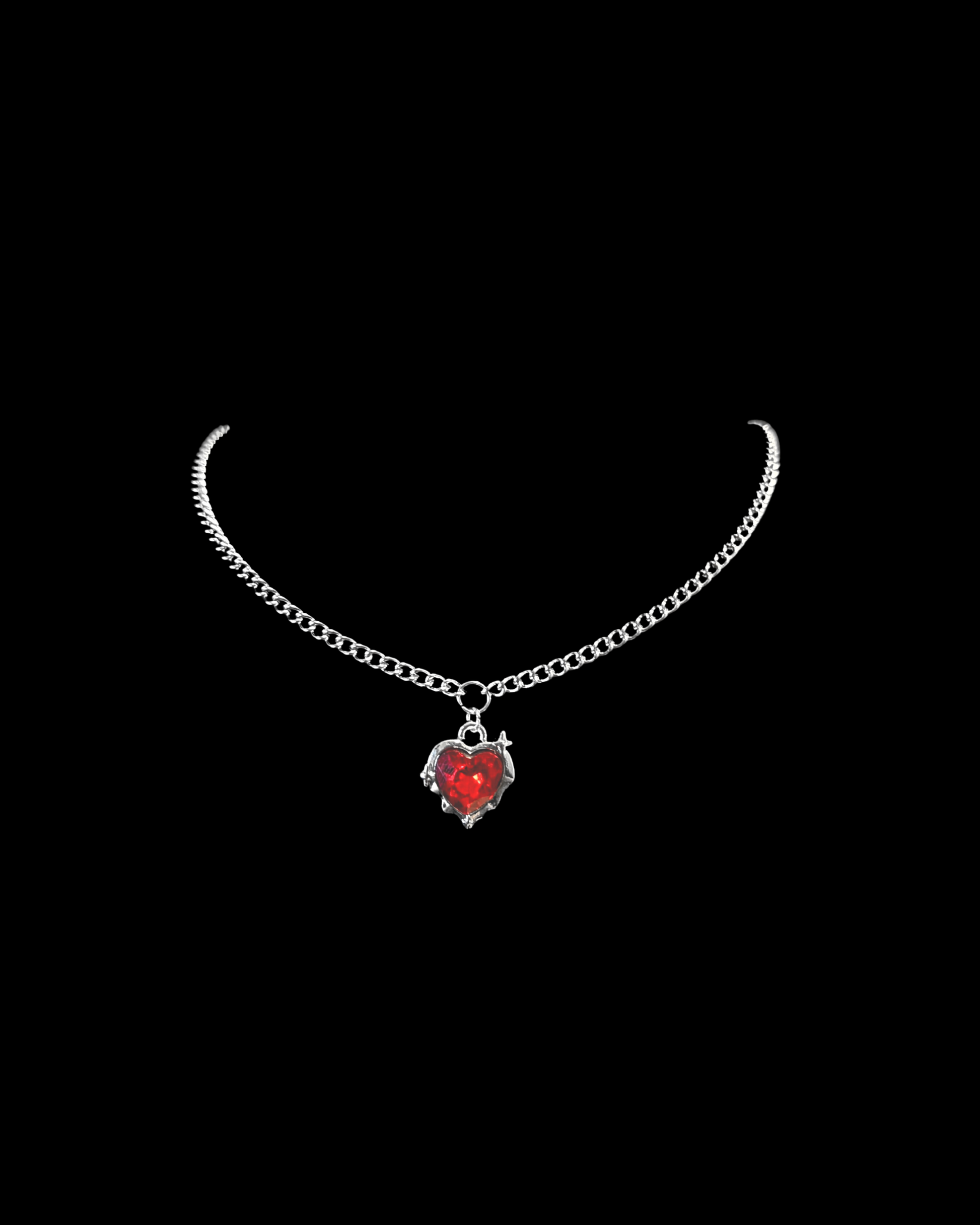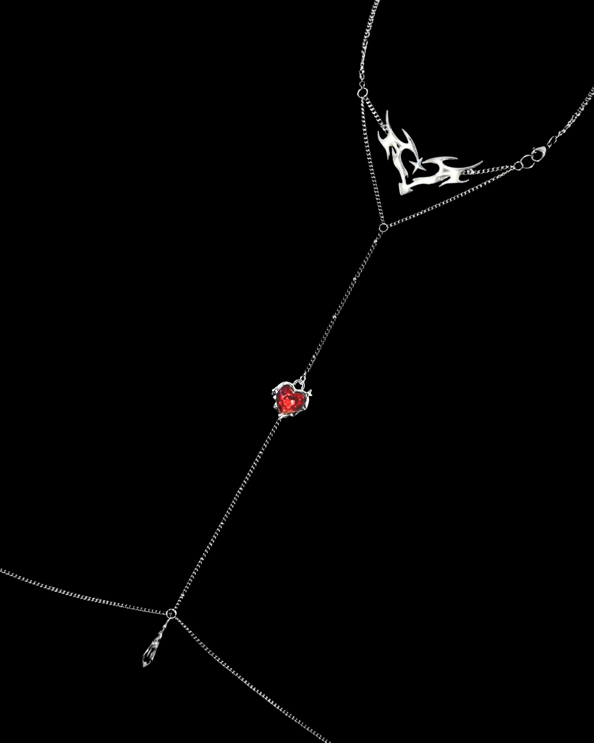 Ornate heart necklace cascading into a ruby-accented spinal flow