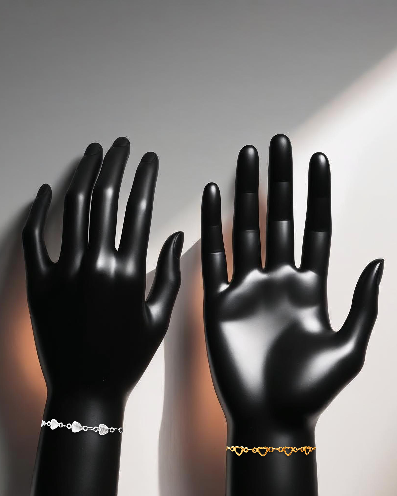Romantic chain bracelets featuring connected heart link design - gold and silver