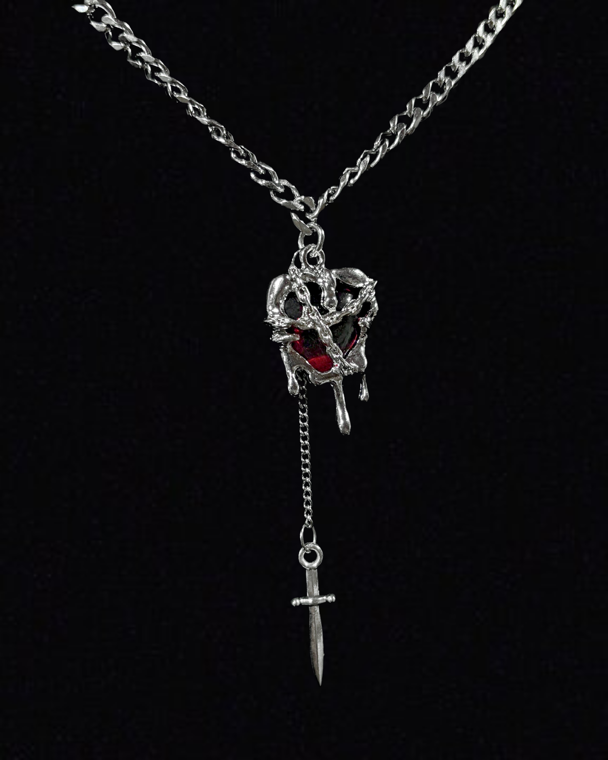 Cuban chain with elaborate ruby heart cascade. Edginess meets contemporary luxury.