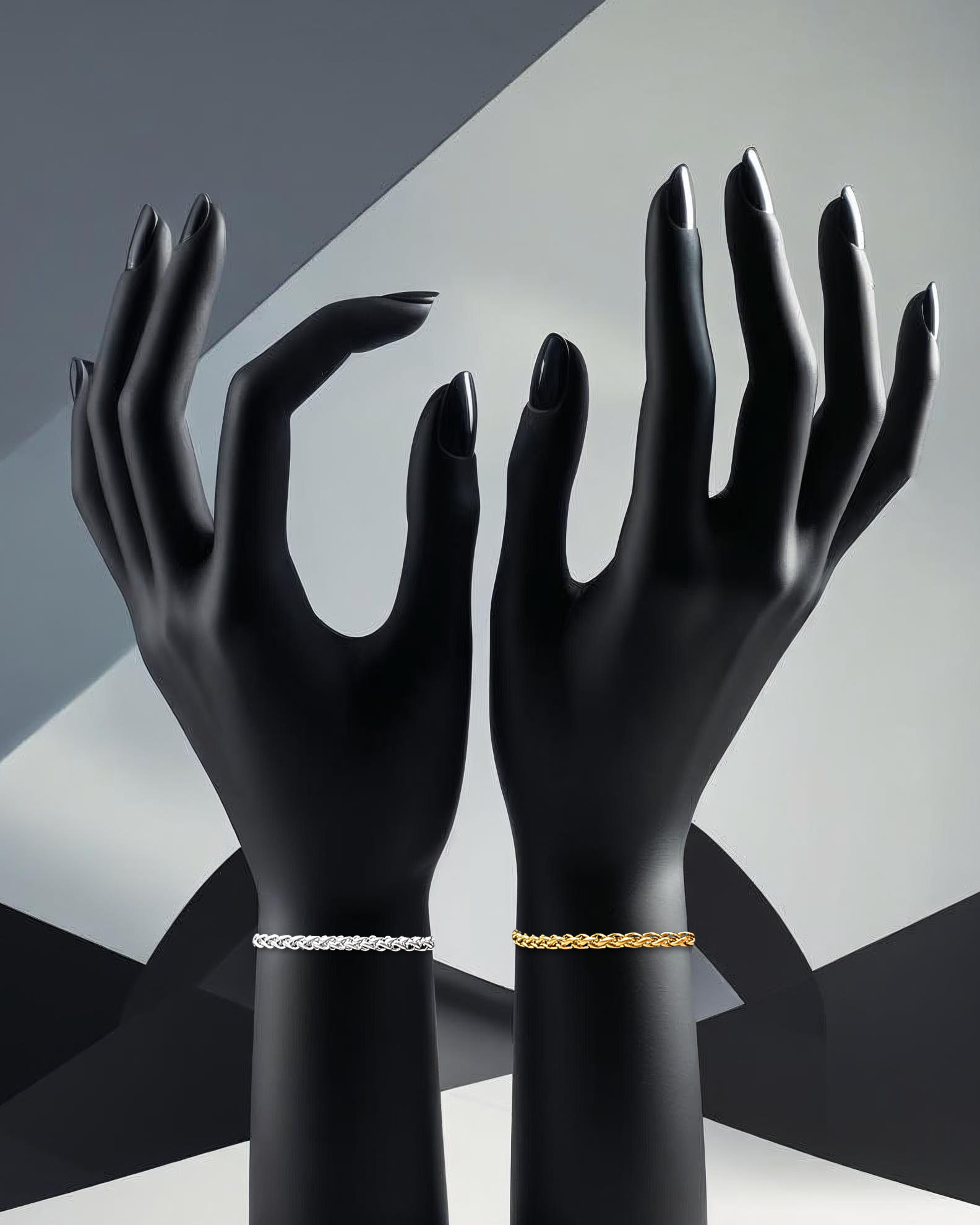 Intricate braided rope chain bracelets in dual metal finish - gold and silver