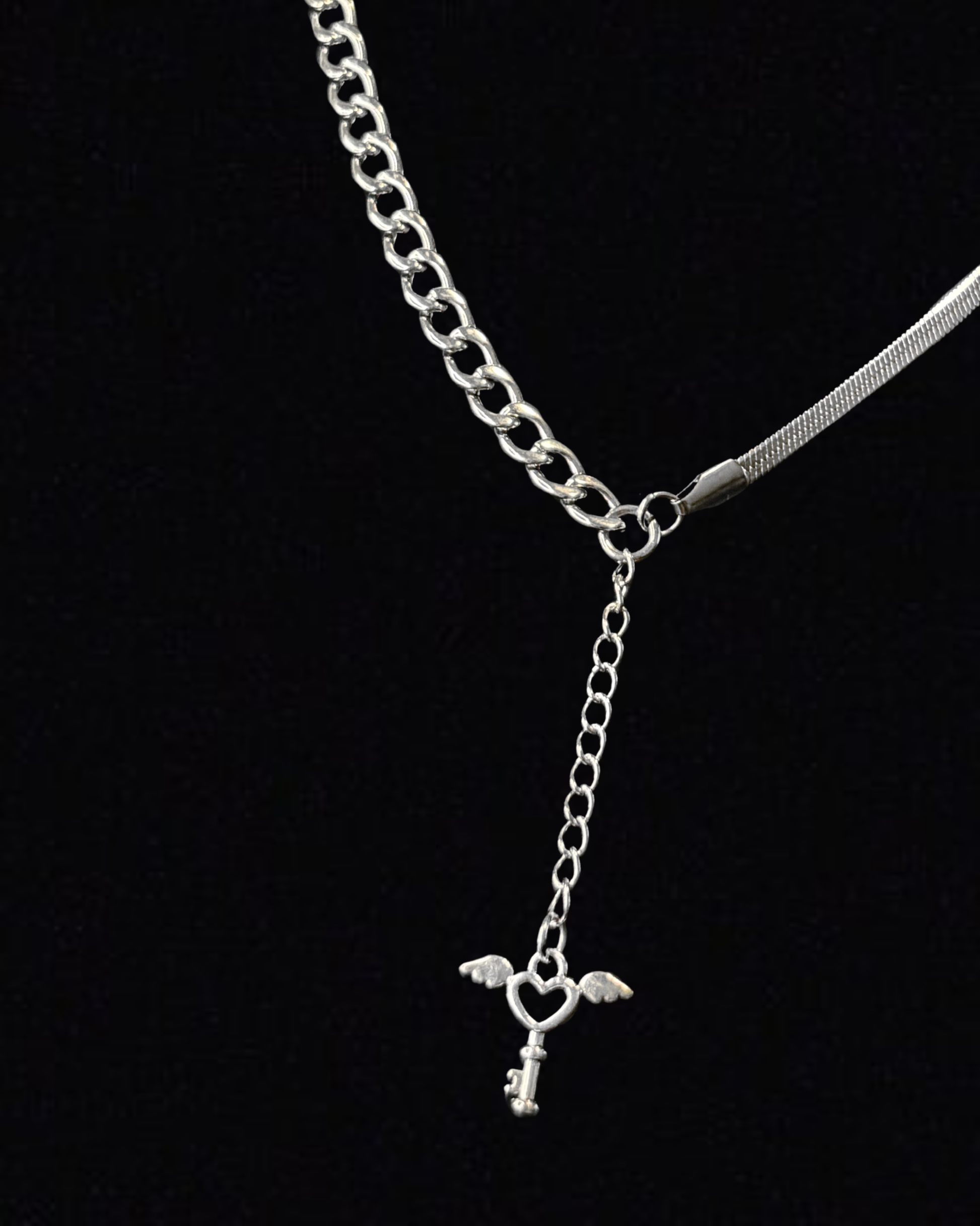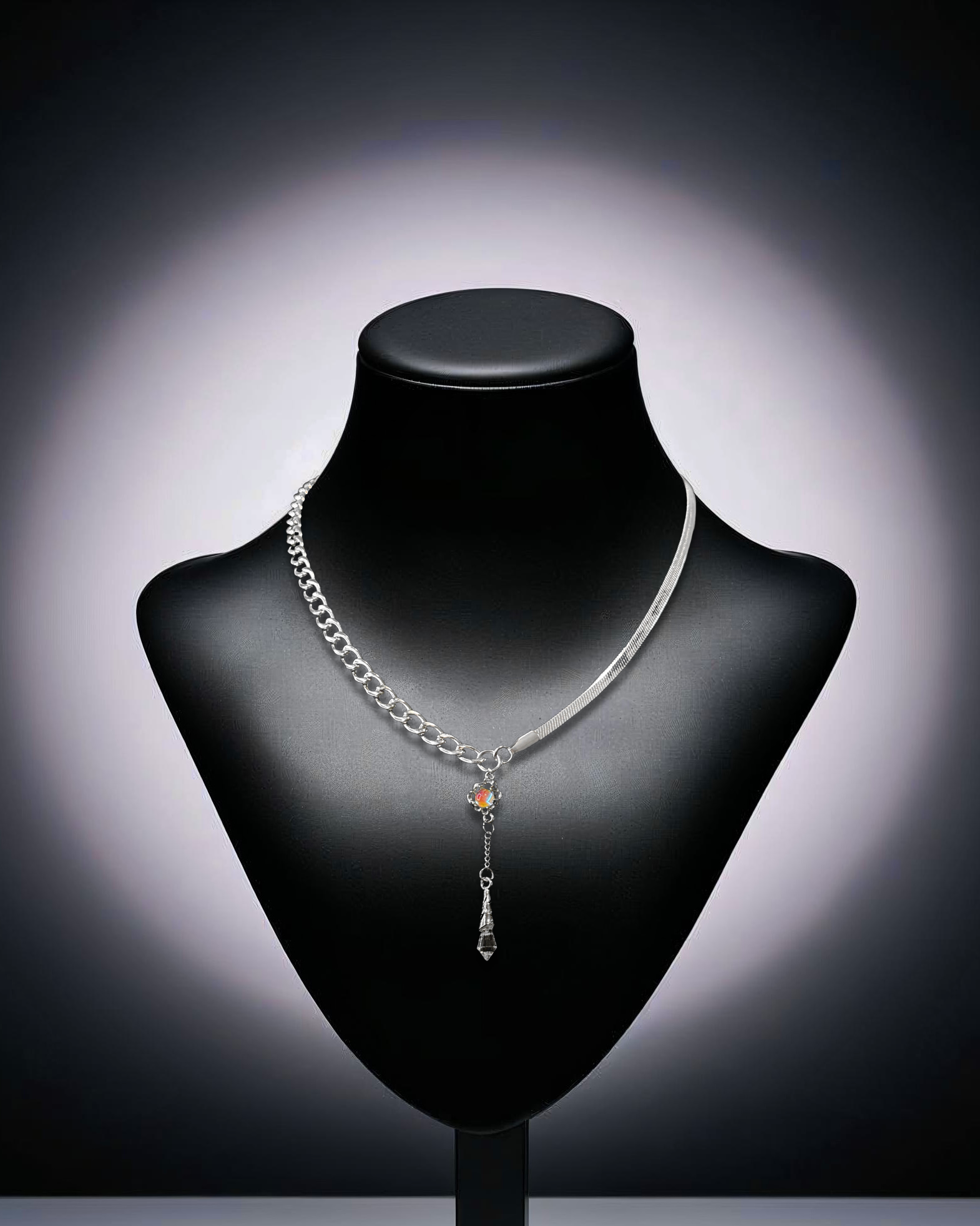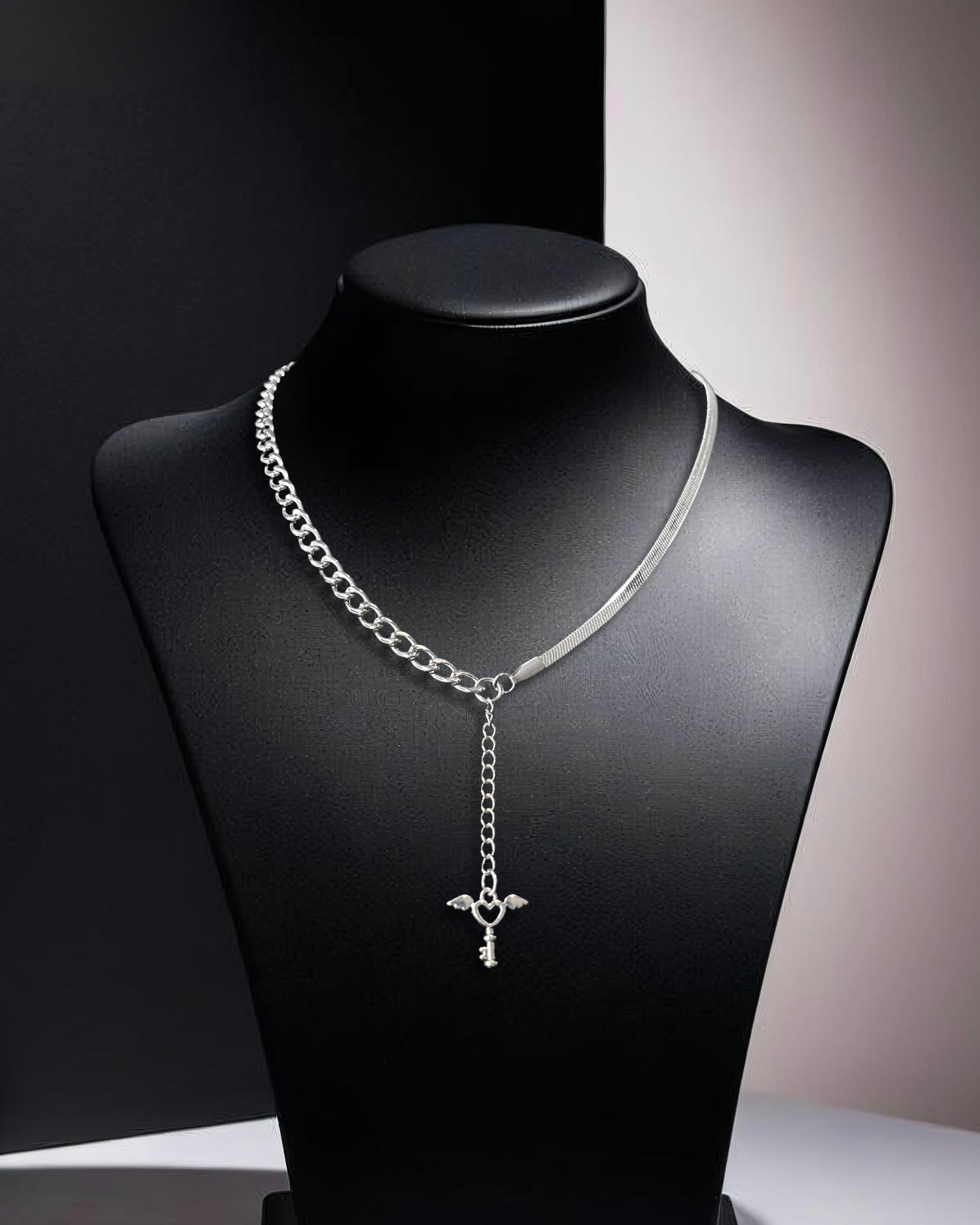 Hybrid chain design combining herringbone elegance with contemporary link elements