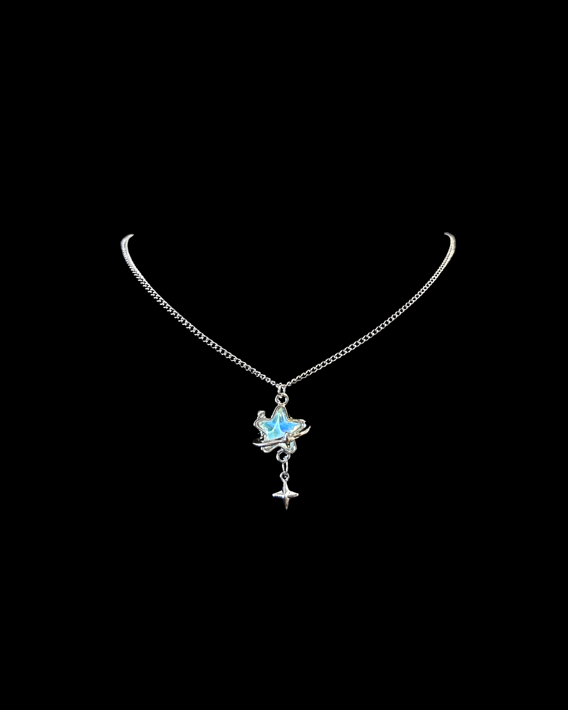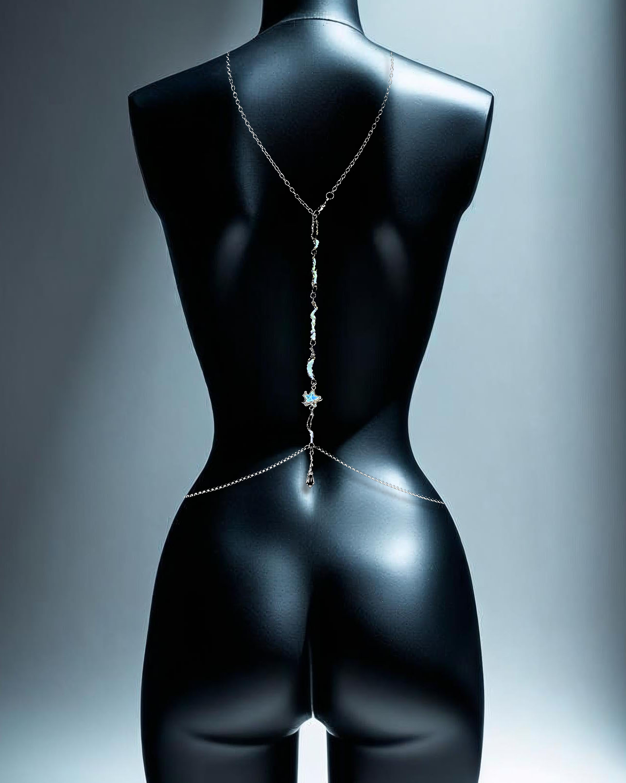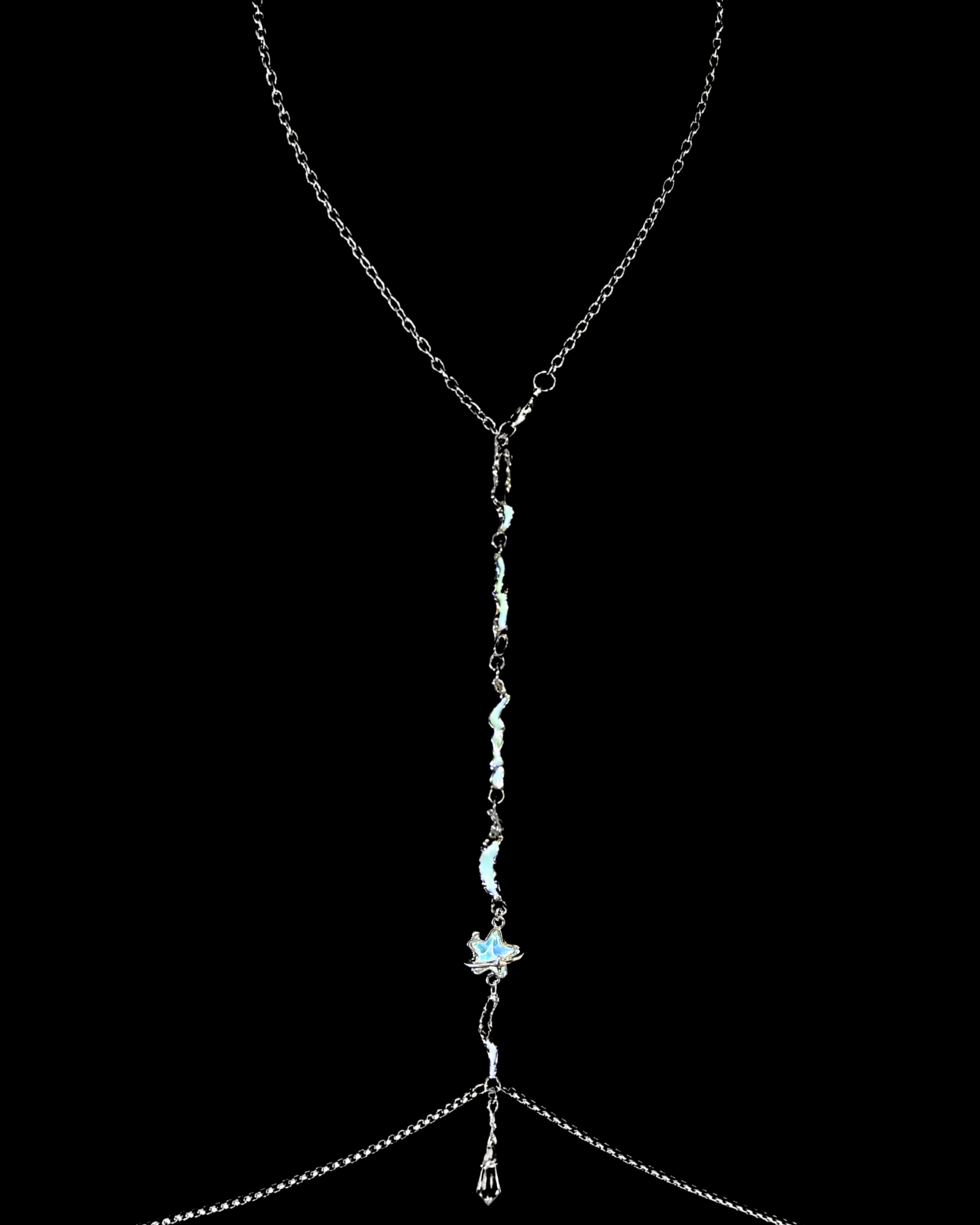 Back : Iridescent blue star flowing through an elaborate spinal chain
