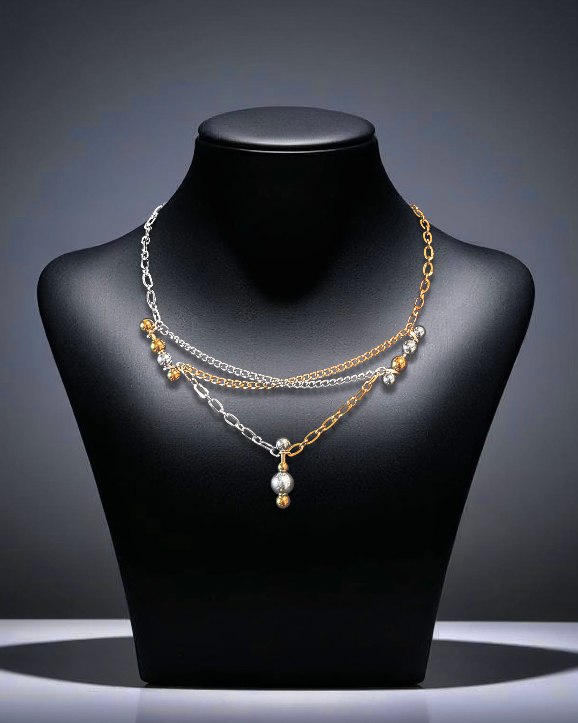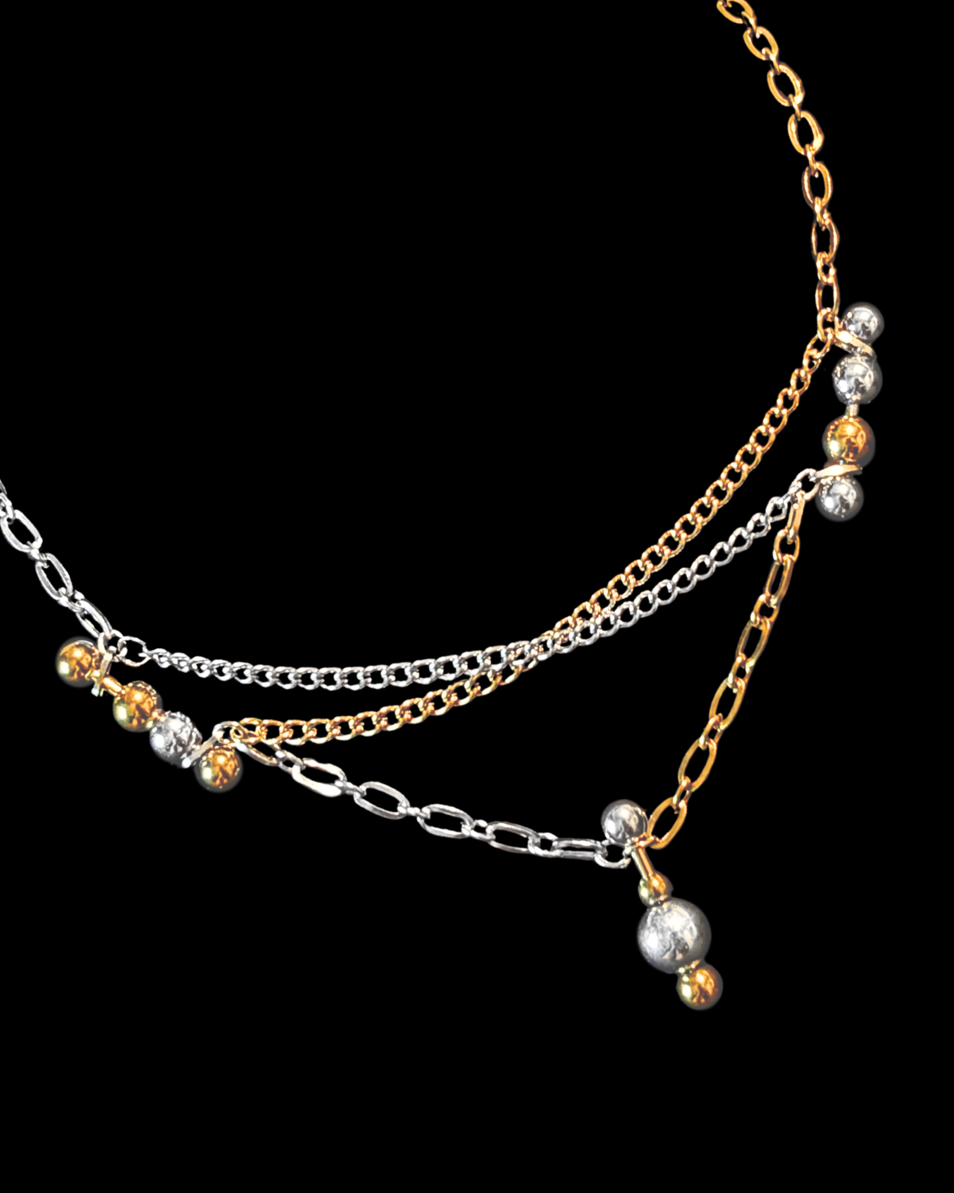 Layered chains with mixed metals and ornate beading - abundance and luxury