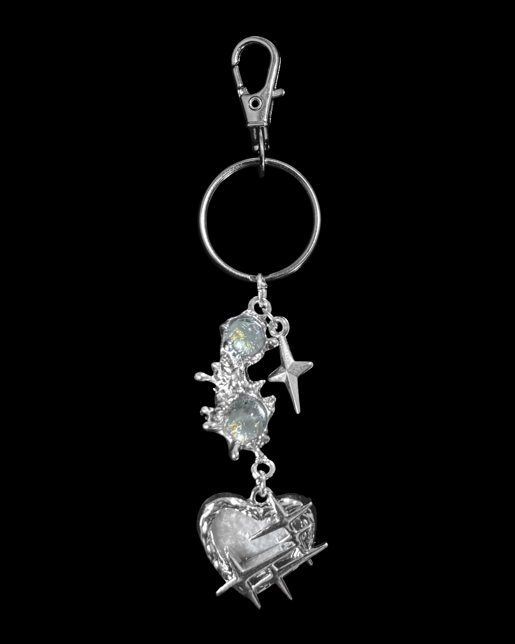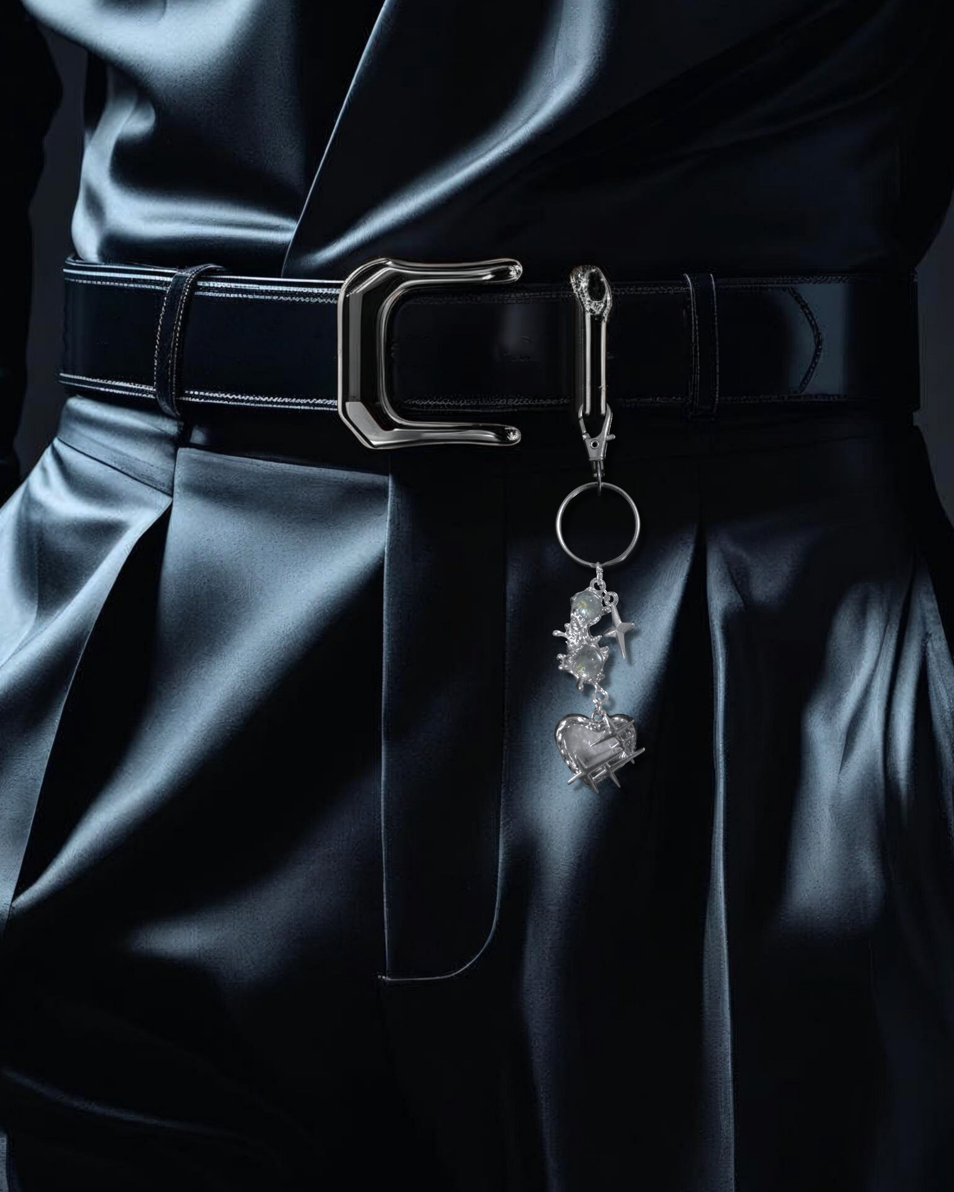 A detailed belt charm featuring crystal-studded elements flowing into a star-wrapped heart