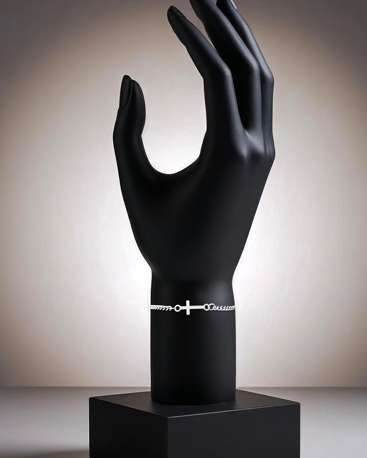 Simple curb bracelet with an integrated cross link design