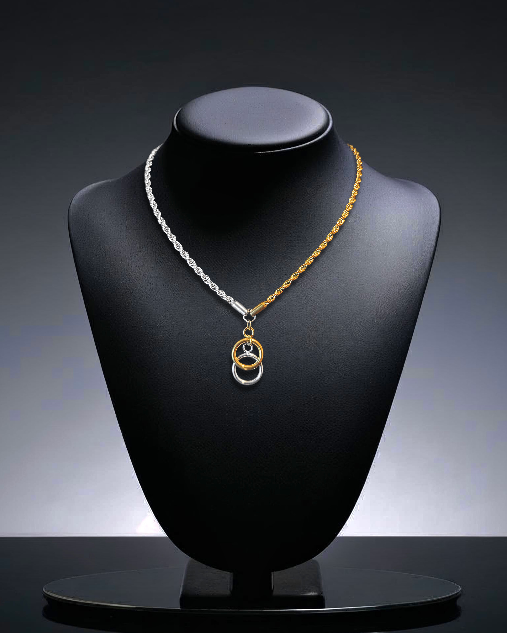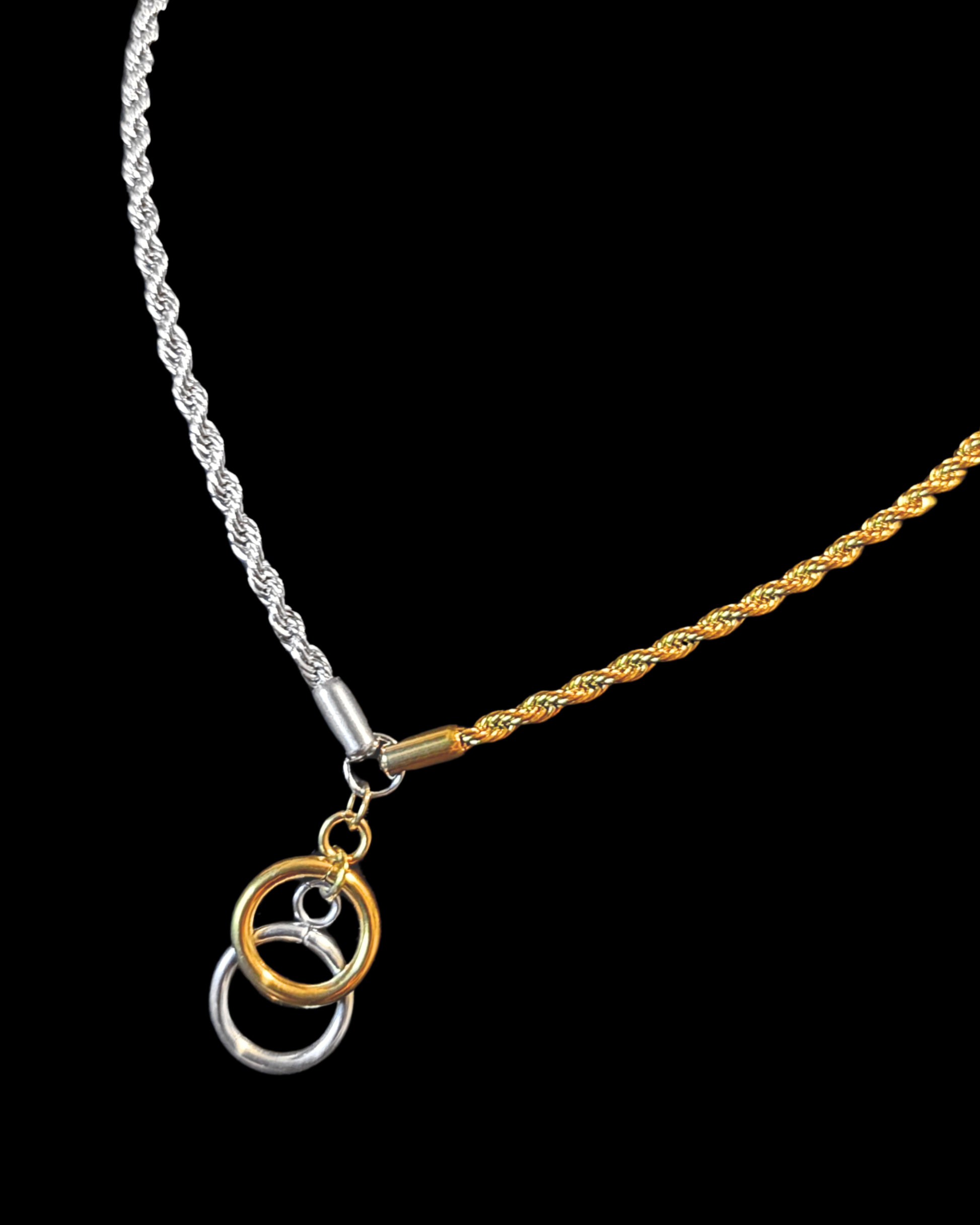 Interlocking gold and silver rings - a love returned in full