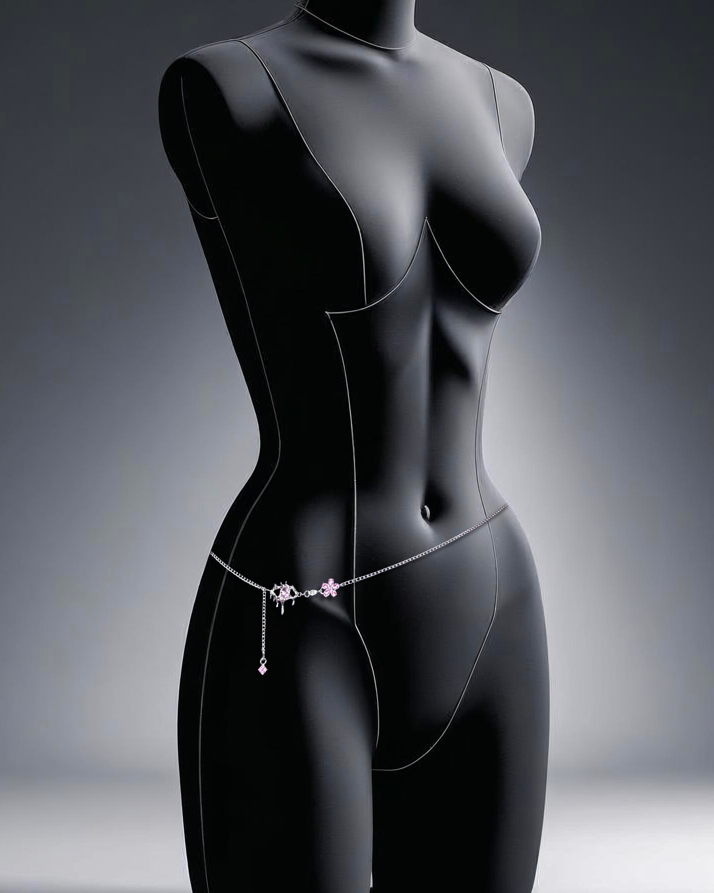 Delicate waist piece with gemstone eye pendant and pink diamond accent drop