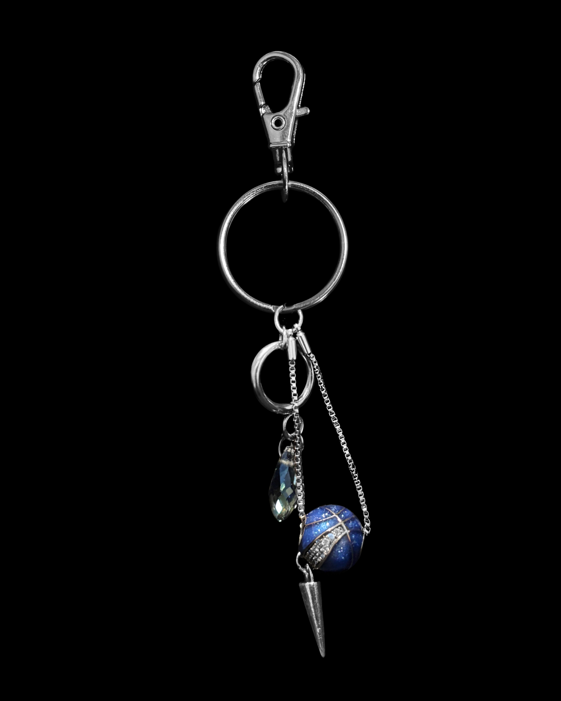 A dynamic belt charm combining a blue basketball pendant with crystal accents and spike